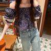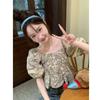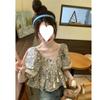 Estilo étnico tamanho pequeno estampado camisa feminina verão novo vintage tassel costurando renda camisa de manga curta