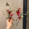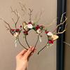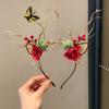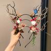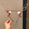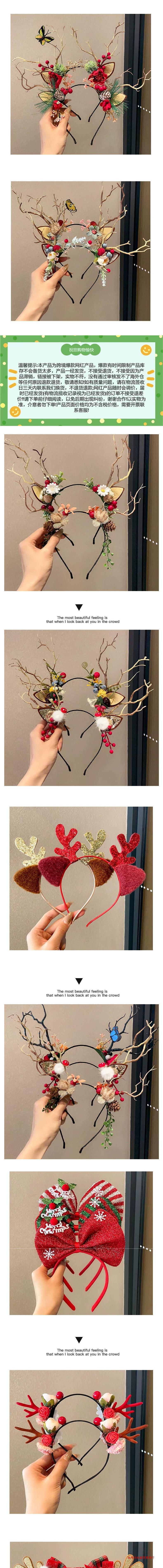 1#Flower red horn christmas headband, 2#Flower brown corner christmas headband, 5#Golden antlers + bow christm...