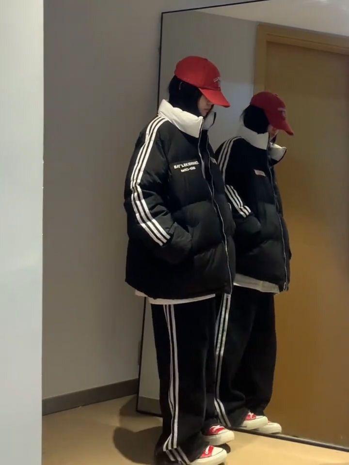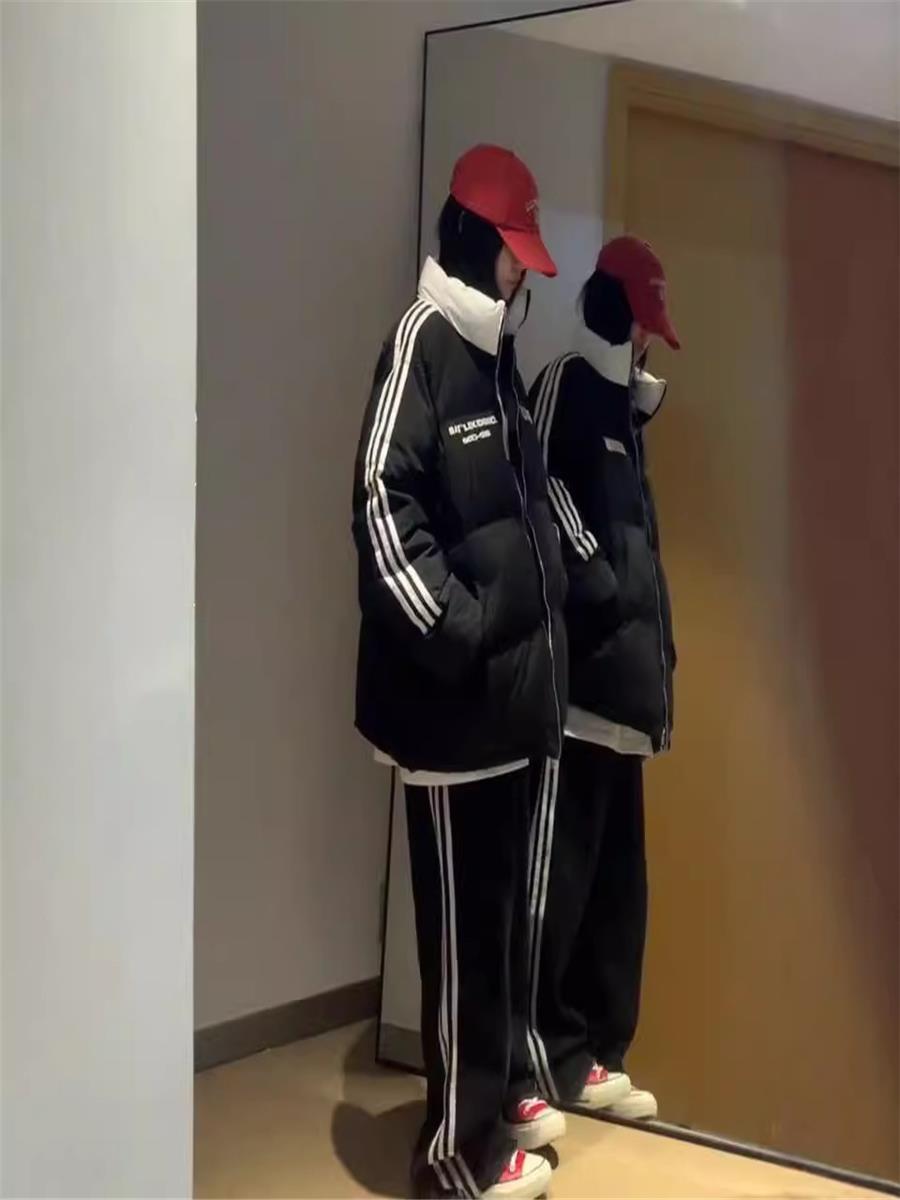 Jaqueta Estilo Americano 2025 Inverno Unissex Casual Solta Casaco de Algodão Moderno Retrô Listrado Casal Jaqueta Puffer