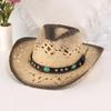 Chapéu de Cowboy Ocidental Transfronteiriço Chapéu de Palha Panamá Chapéu de Jazz Vazado Chapéu de Sol de Viagem Primavera Verão Chapéu de Praia à Beira-Mar