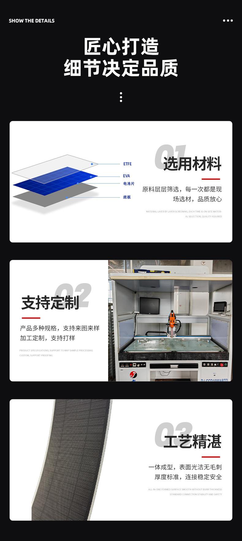 Painel Solar Fotovoltaico Flexível Silício Monocristalino Painel Laminado ETFE Exterior Bateria Recarregável 5V Produção em Massa de Fábrica Atacado