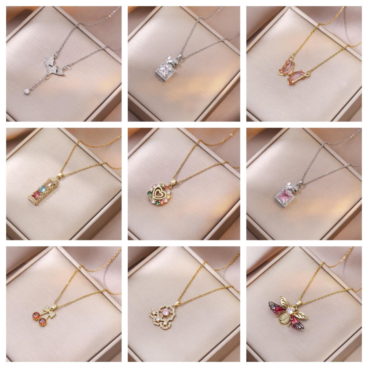 Colar Feminino Moda Transfronteiriça Pingente Flor Letra Temperamento Simples Nicho Versátil Aço Titânio Corrente Clavícula Joia