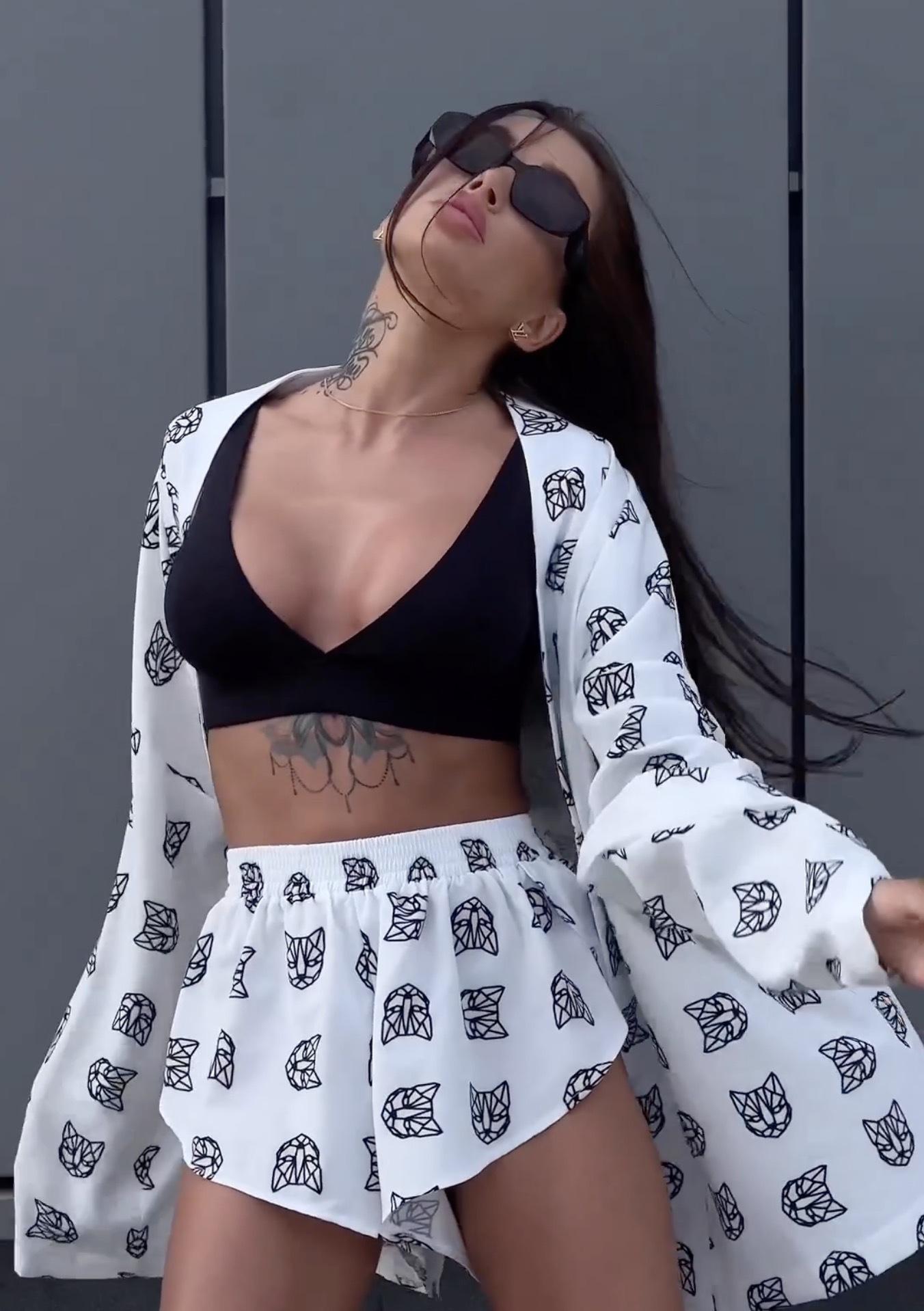 2024 Europeu e Americano Transfronteiriço Novo Solto Manga Longa Estampa Casual Trabalho Amarração Pijama Conjunto Shorts Cintura Alta