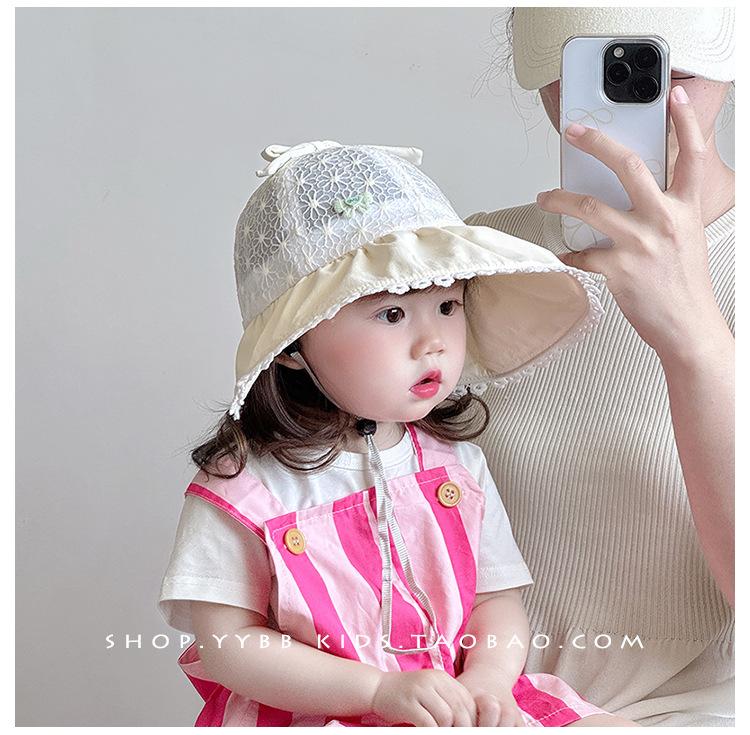 Chapéu Infantil de Aba Larga Verão Fino Quebra-Sol Chapéu de Pescador Bebê Menina Viagem Malha Respirável Chapéu de Sol