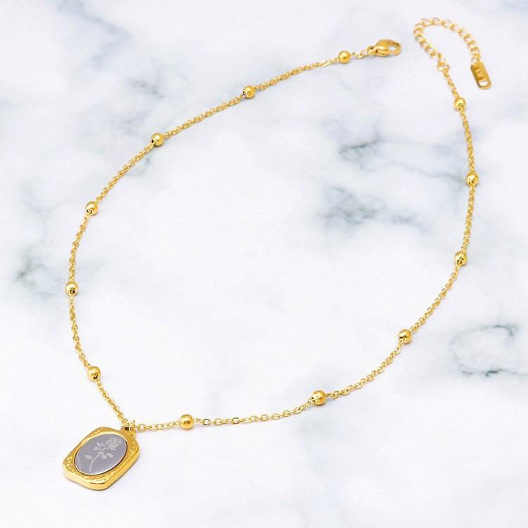 Agite o som líquido vermelho com jóias quadrado rosa pingente de aço titânio oval curto T-shirt colar de clavícula atacado