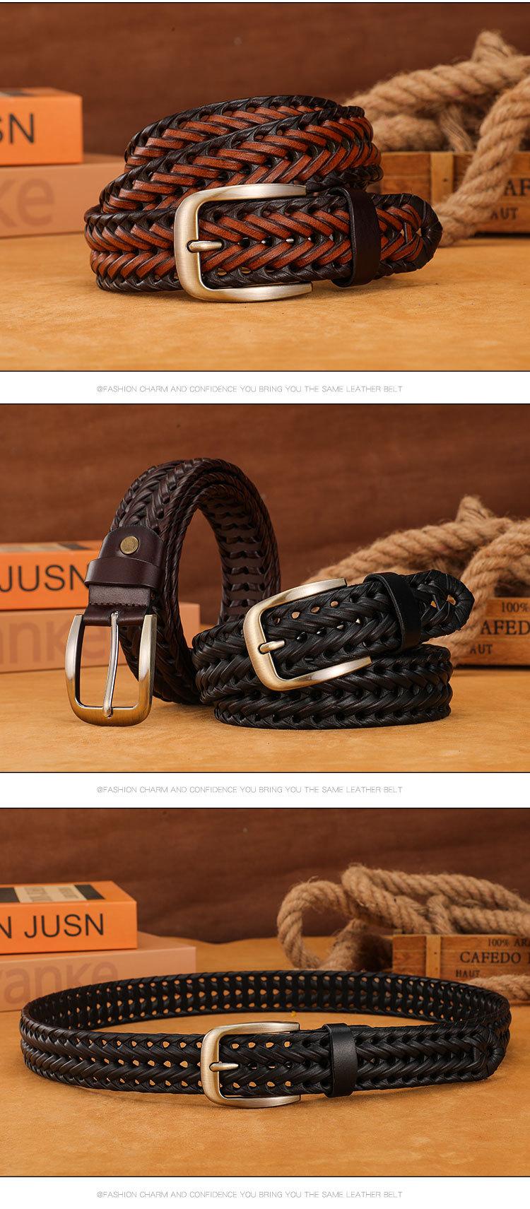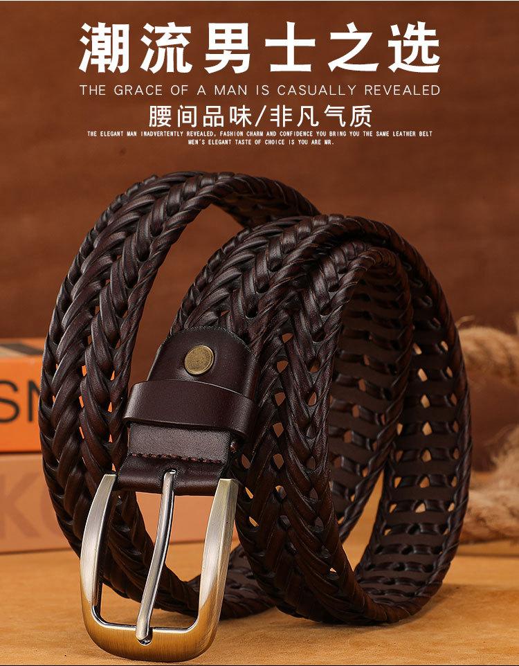 Cinto Masculino Retrô Tecido Puro Feito à Mão Sem Furos Couro Genuíno Calças Cinto de Cintura Estudante Fivela de Pino Versátil Tendência Jovens