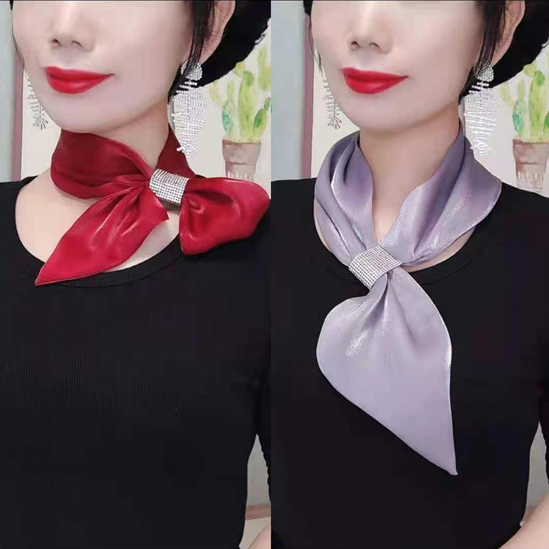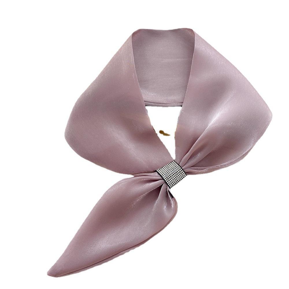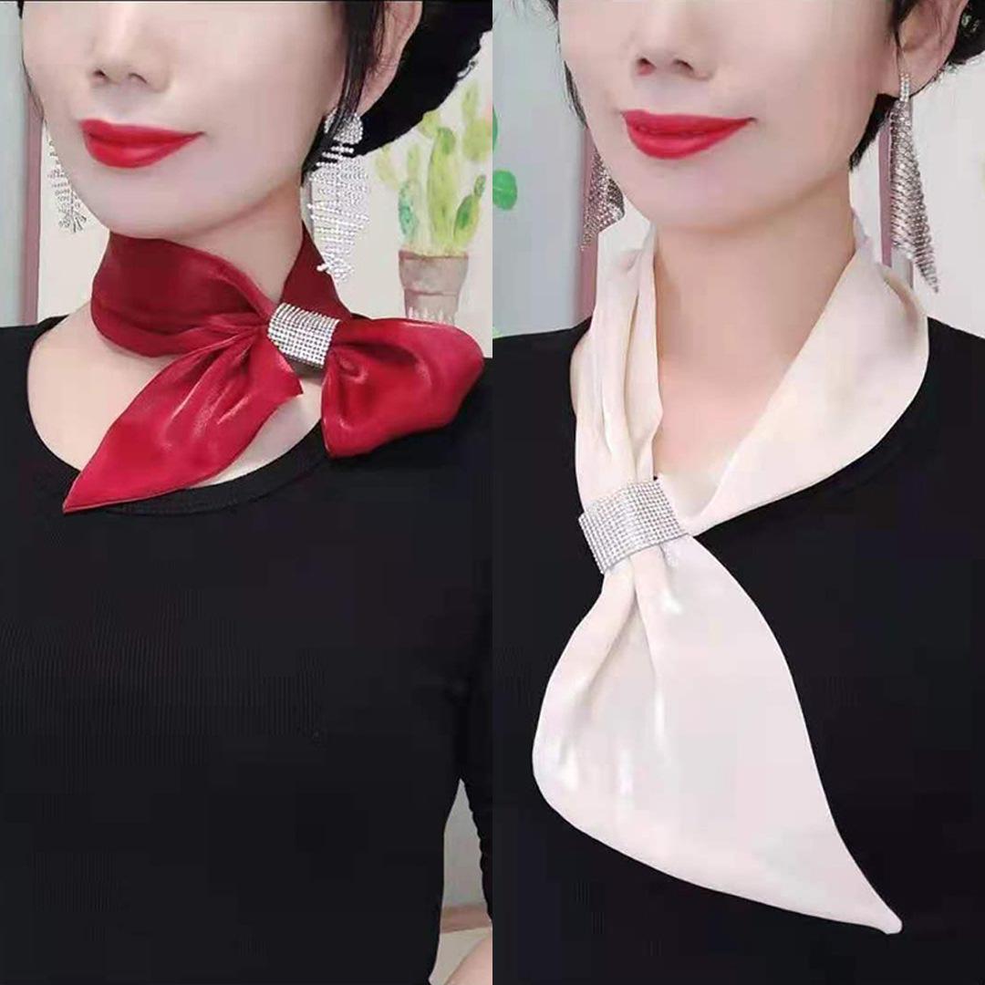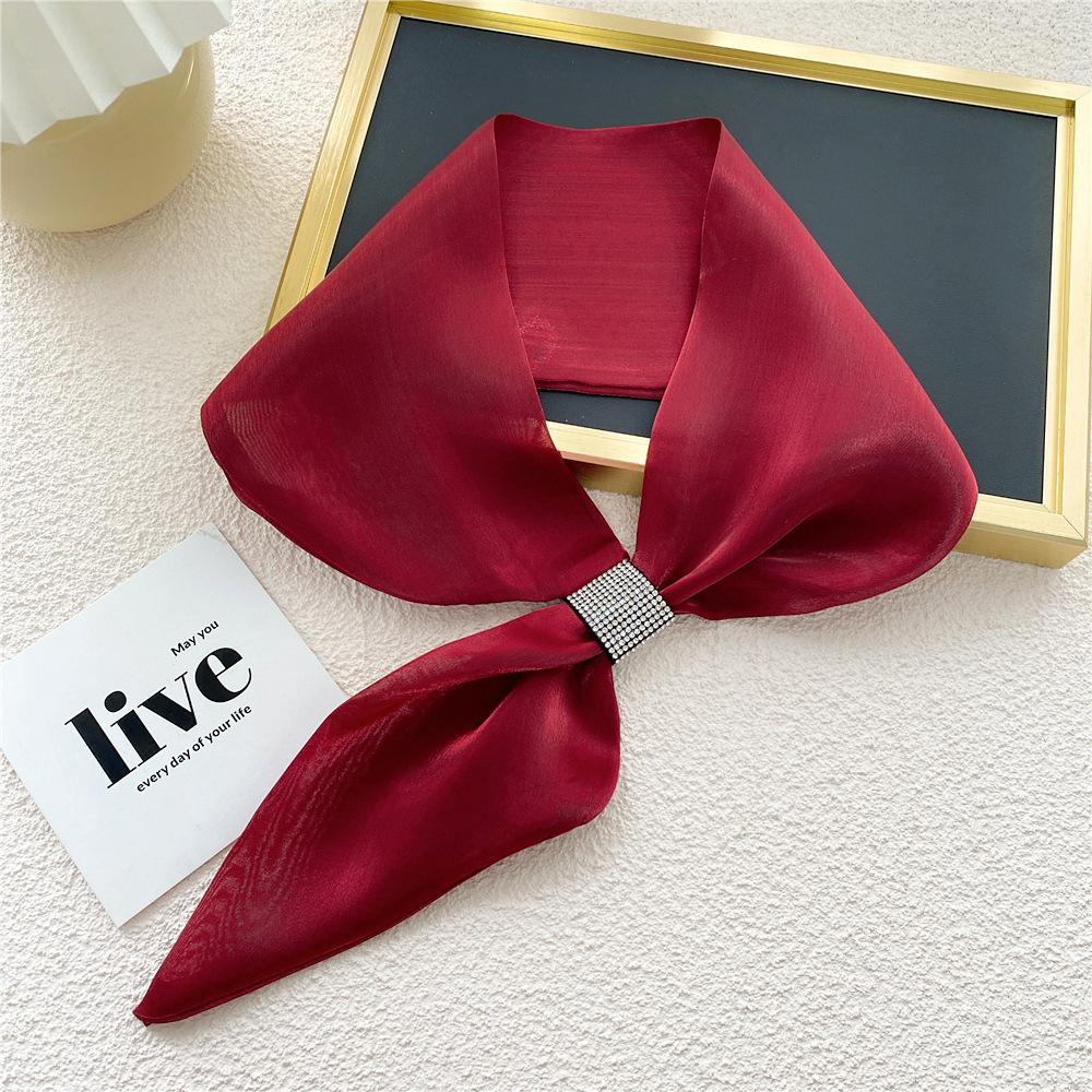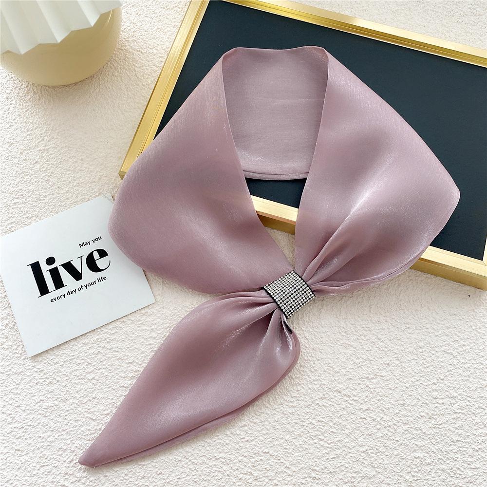 Lenço de Seda Pequeno Longo Cor Sólida Dupla Camada Proteção de Pescoço Lenço de Pescoço Decorativo Tie Bag Cinto de Cabelo Lenço Quadrado Feminino All-Match