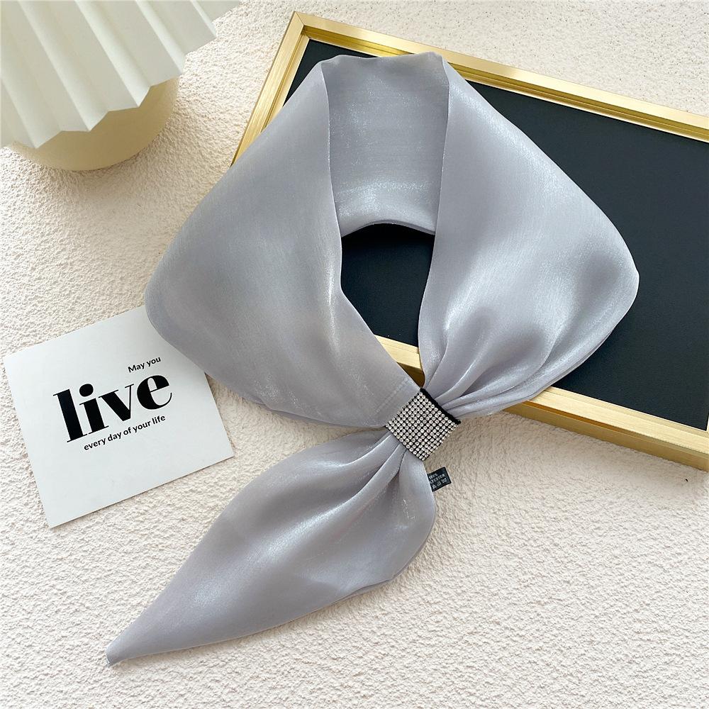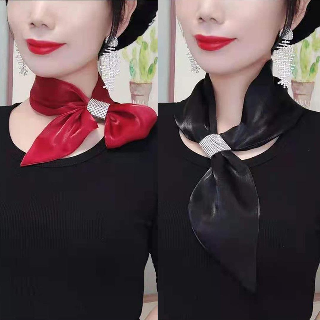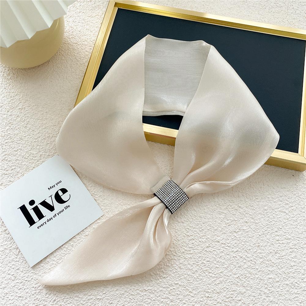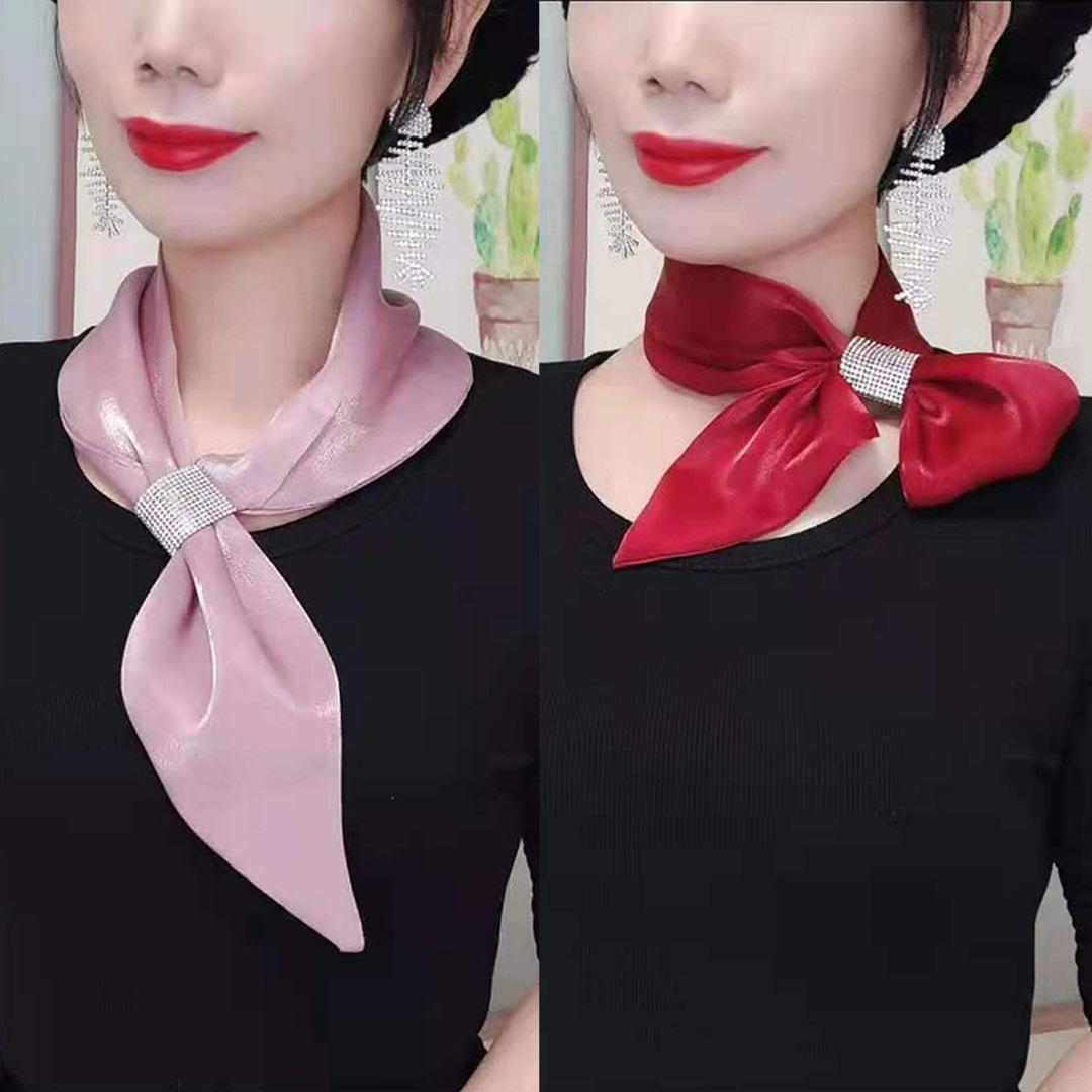 Lenço de Seda Pequeno Longo Cor Sólida Dupla Camada Proteção de Pescoço Lenço de Pescoço Decorativo Tie Bag Cinto de Cabelo Lenço Quadrado Feminino All-Match