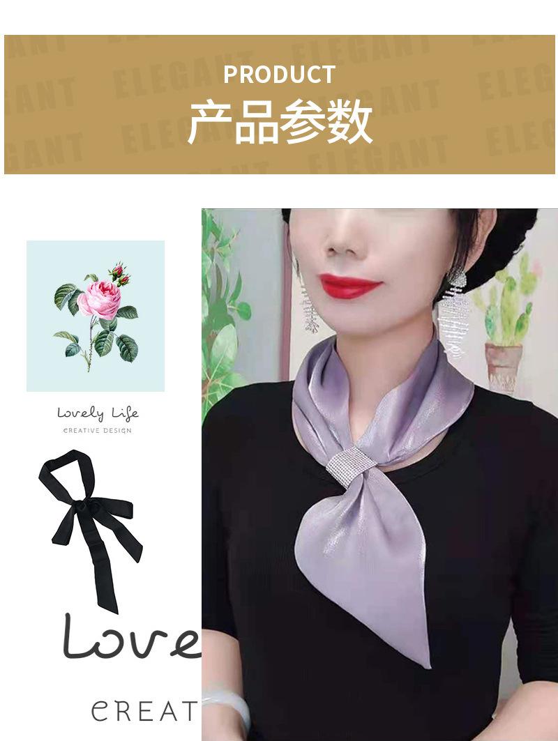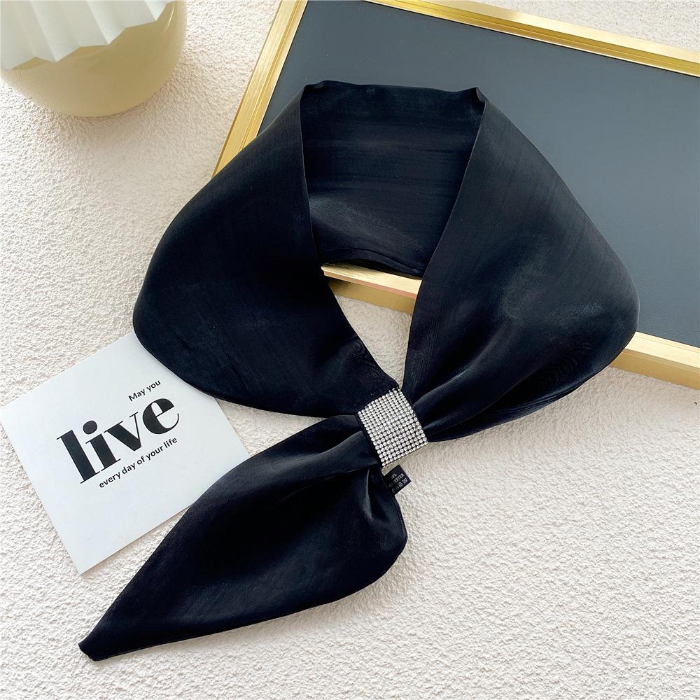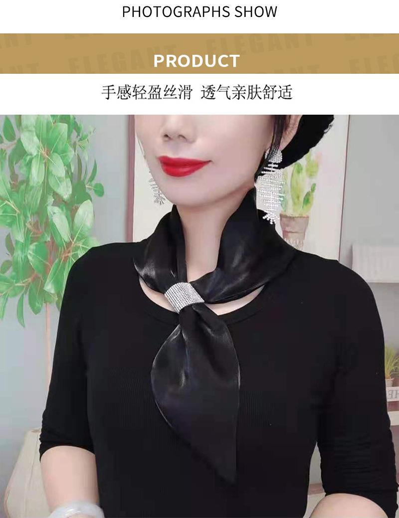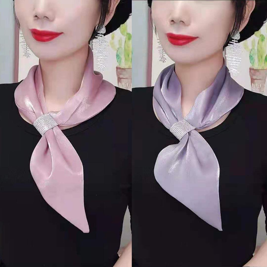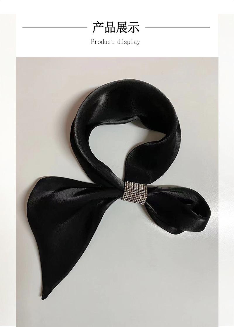 Lenço de Seda Pequeno Longo Cor Sólida Dupla Camada Proteção de Pescoço Lenço de Pescoço Decorativo Tie Bag Cinto de Cabelo Lenço Quadrado Feminino All-Match