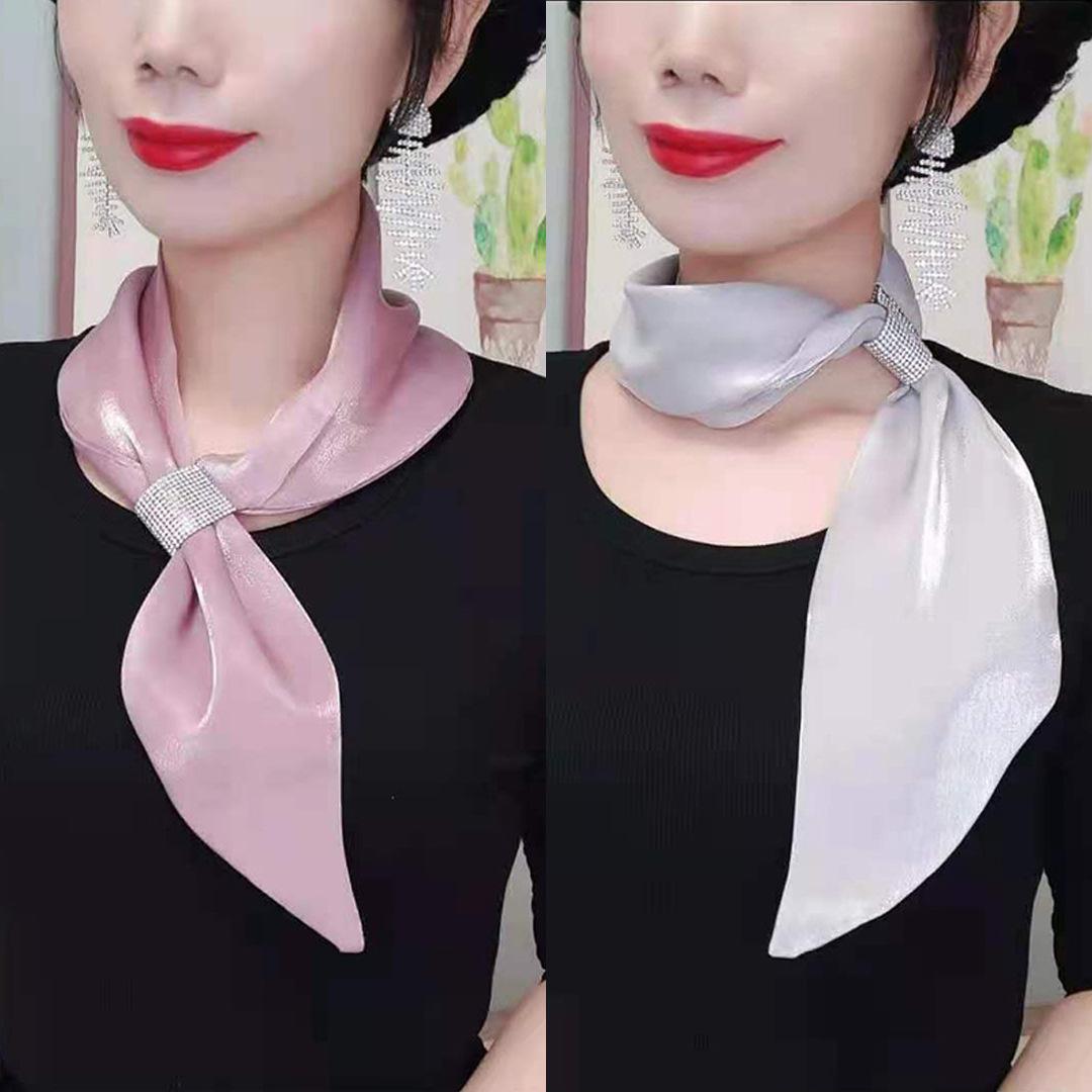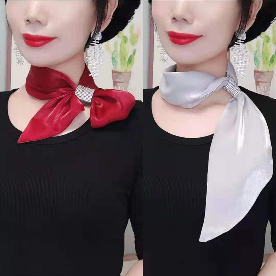 Compre Lenço de Seda Pequeno Longo Cor Sólida Dupla Camada Proteção de Pescoço Lenço de Pescoço Decorativo Tie Bag Cinto de Cabelo Lenço Quadrado Feminino All-Match no atacado no Joom.pro