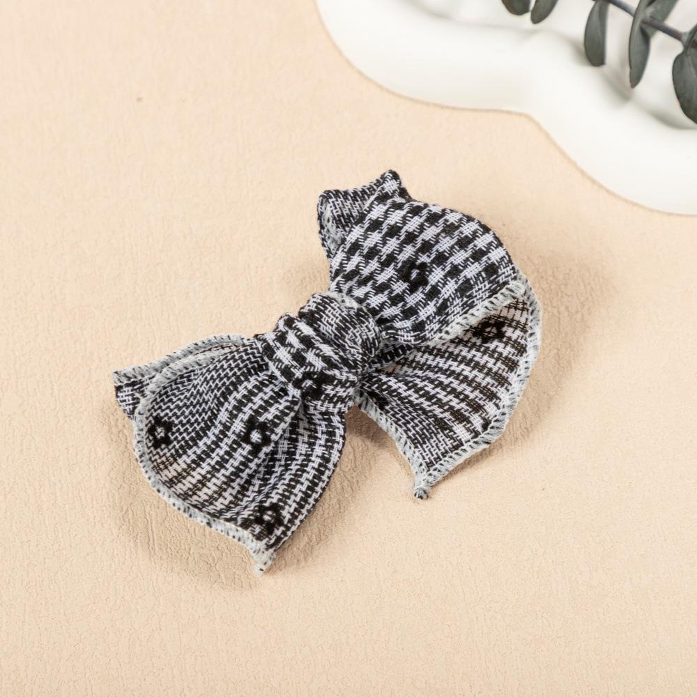 Grampo de Cabelo de Laço de Tecido Estilo Europeu e Americano para Meninas Tecido Xadrez Estampado Bebê Tudo-Incluso Que Não Machuca o Cabelo
