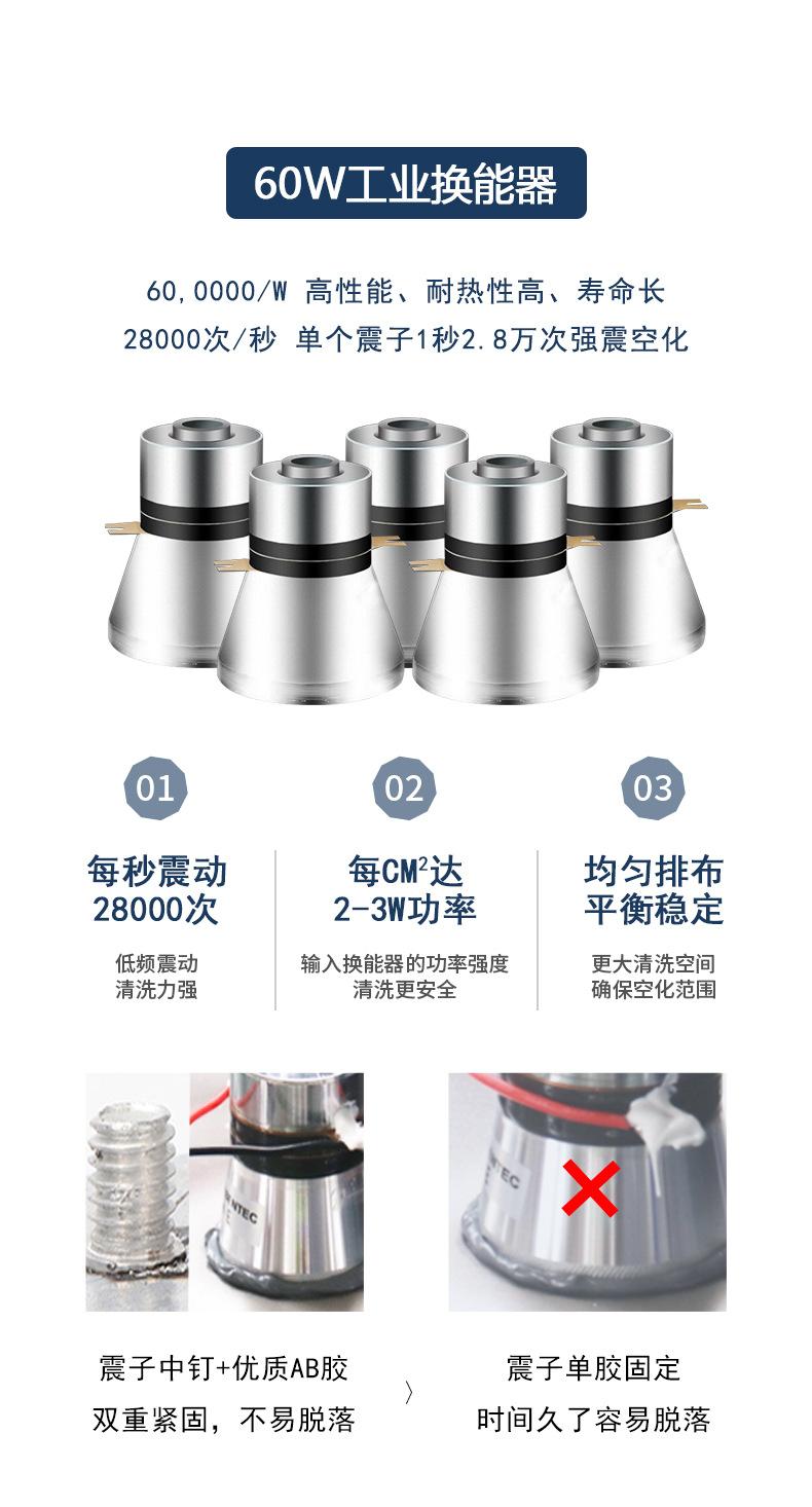 O tipo T de comutação de potência tem condições de aplicação de limpeza ultrassônica, principalmente para limpeza de instrumentos especiais nas indústrias agrícola, alimentícia, cosmética e outras, bem como aplicações de extração de componentes e emulsificação.
