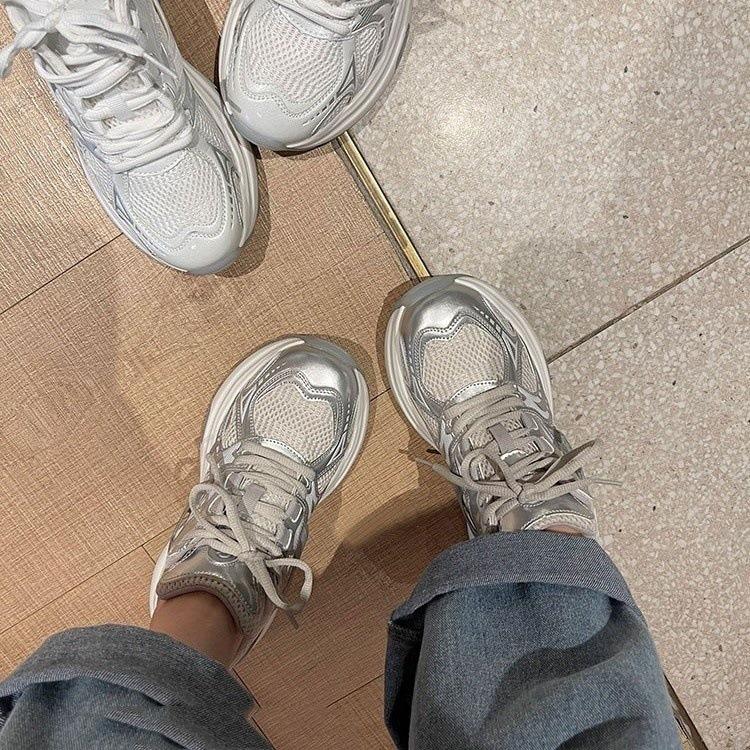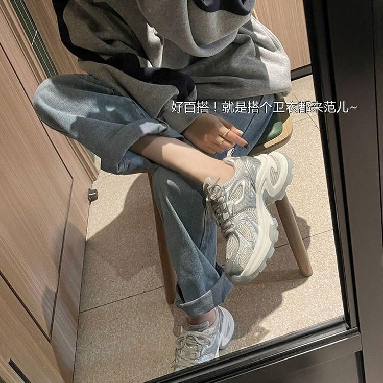 Compre Tênis Prateados de Pai Femininos Verão 2025 Novos Tênis de Malha com Sola Grossa e Aumento de Altura Malha Respirável Fino Casual Esportivo no atacado no Joom.pro