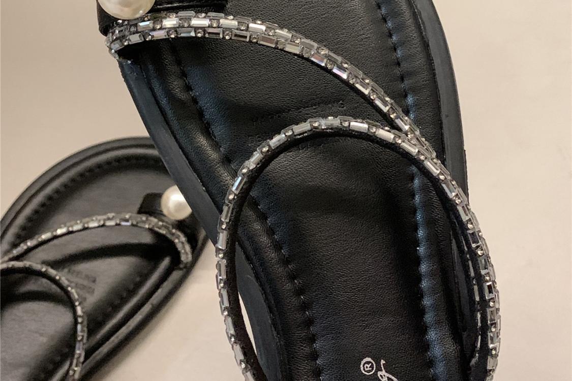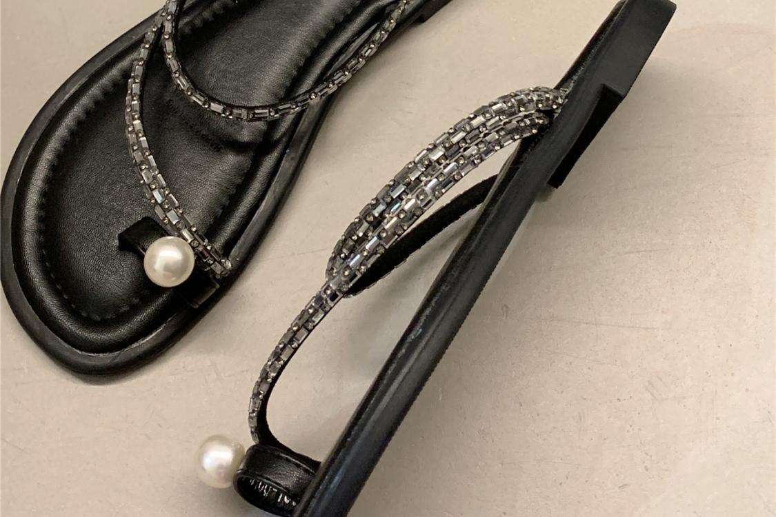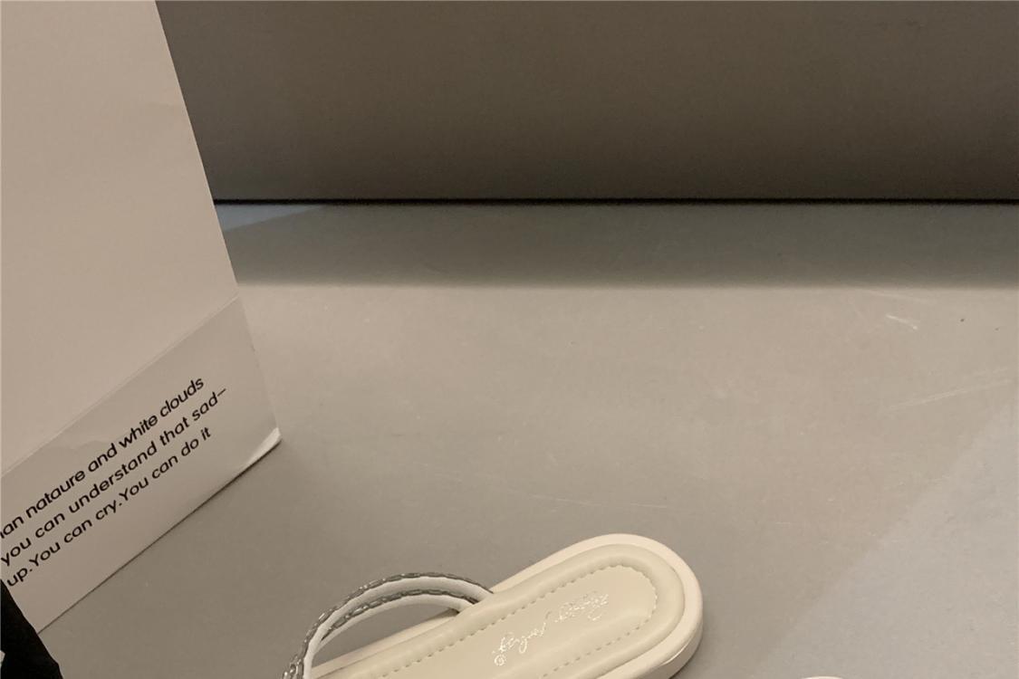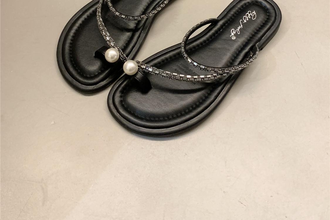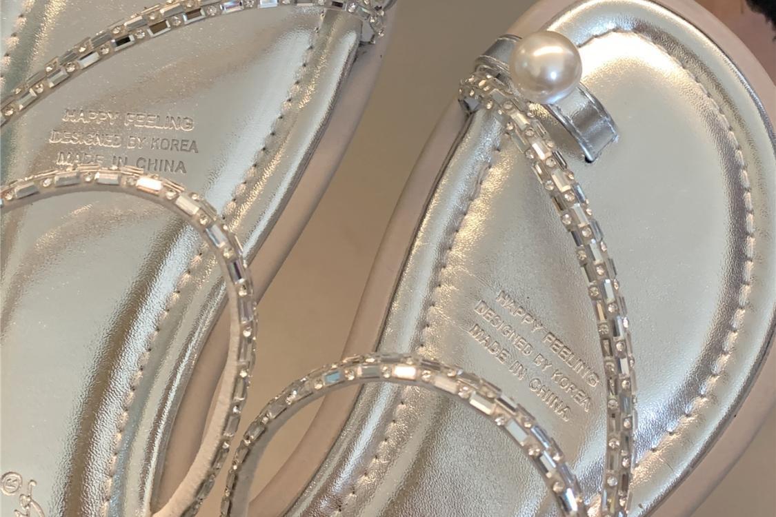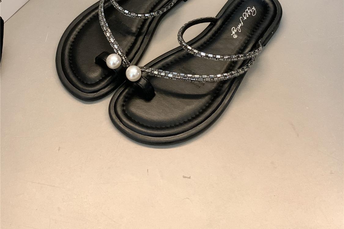 Compre Sapatilhas Slip-On Francesas Chinelos para Verão Feminino Roupa de Exterior 2025 Estilo Feriado Pérola Strass Ins Sandálias Prateadas no atacado no Joom.pro