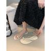 Sapatilhas Slip-On Francesas Chinelos para Verão Feminino Roupa de Exterior 2025 Estilo Feriado Pérola Strass Ins Sandálias Prateadas