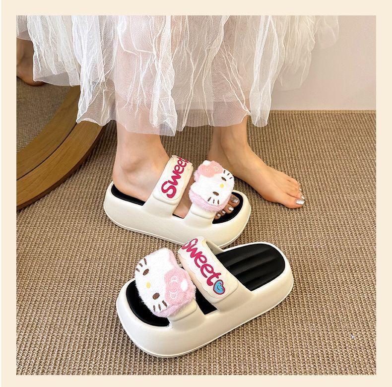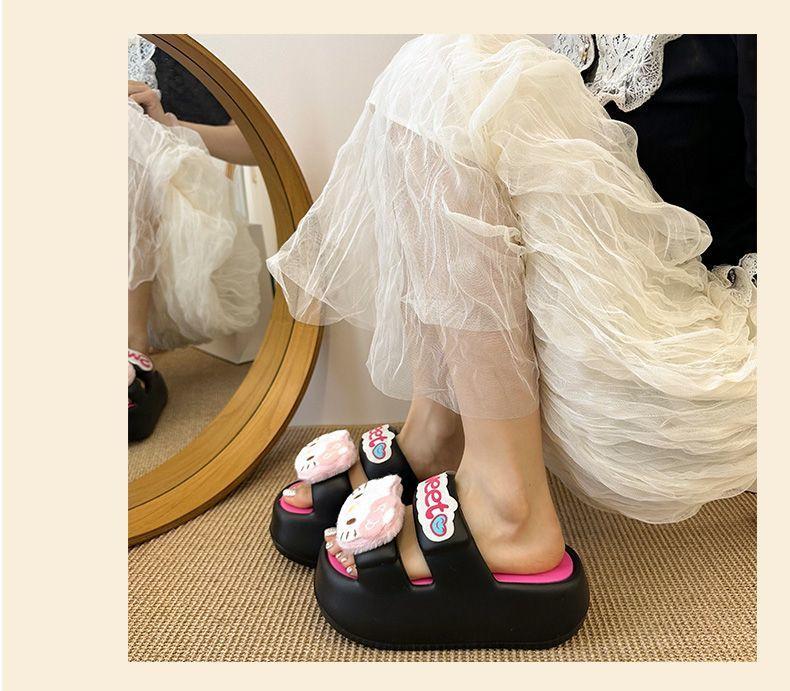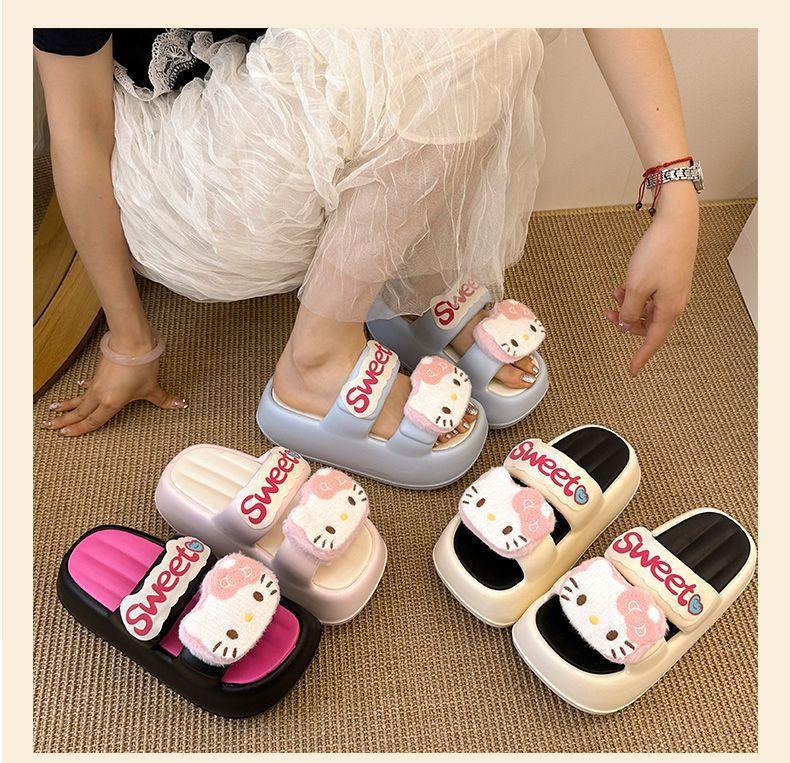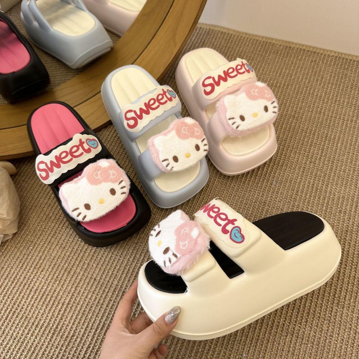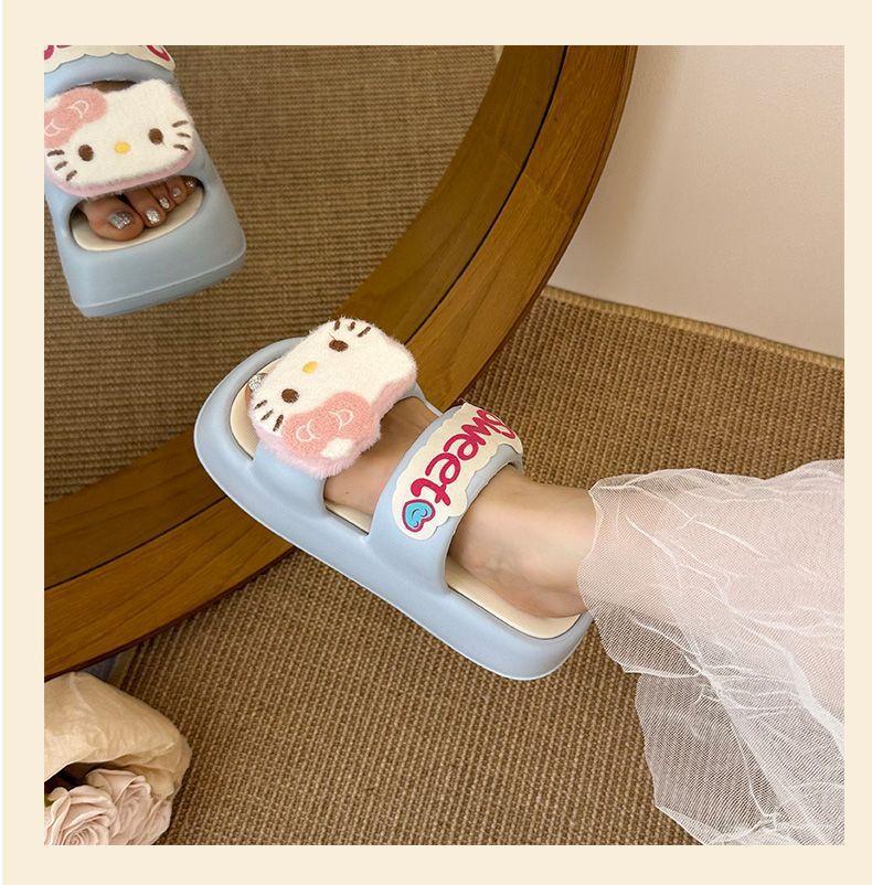 Verão 2025 Novo Chinelos de Gatinho Macios e Fofos de Sola Grossa Chinelos de Praia Femininos Chinelos Confortáveis de Uma Tira
