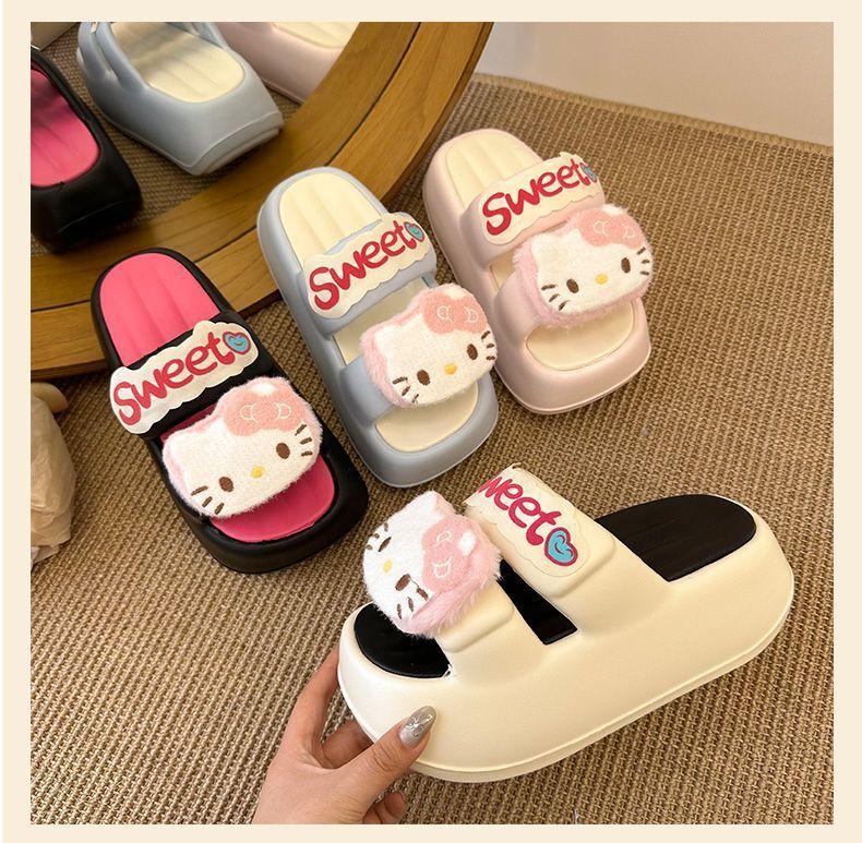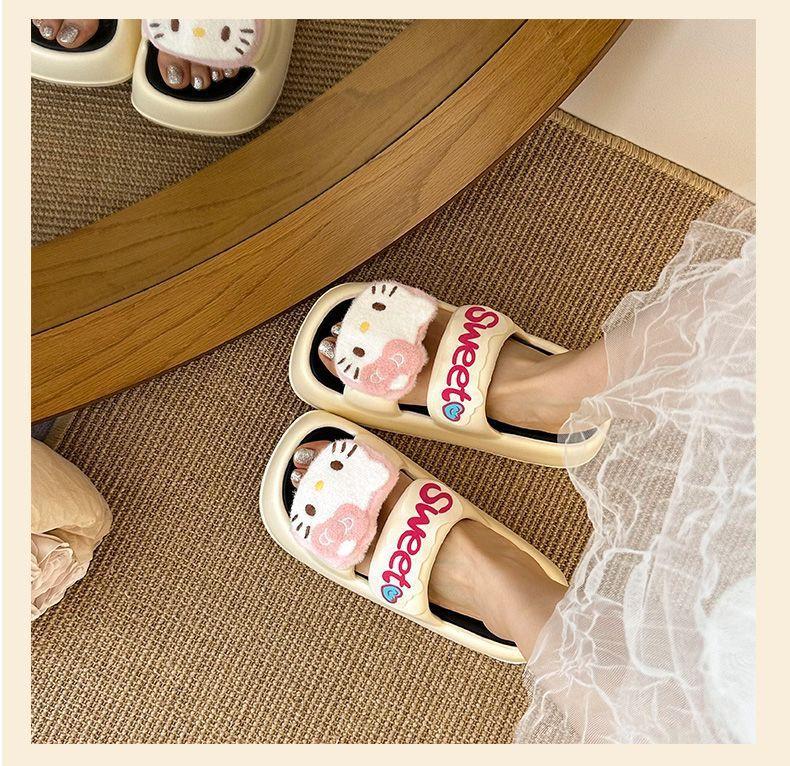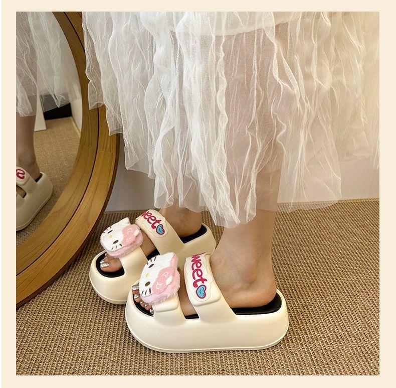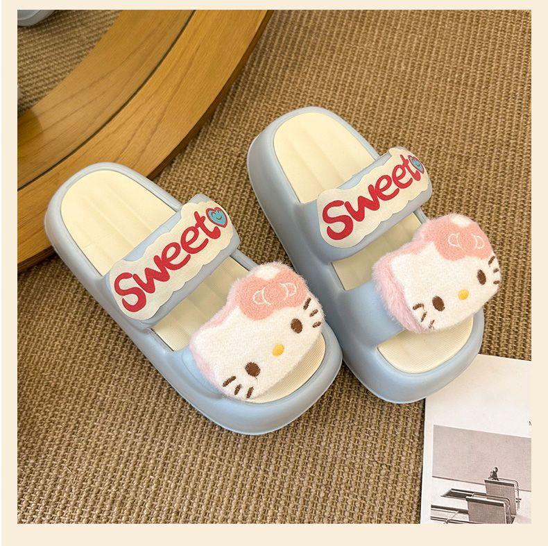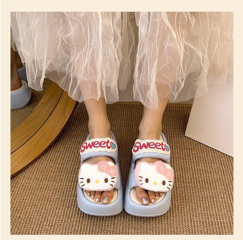Verão 2025 Novo Chinelos de Gatinho Macios e Fofos de Sola Grossa Chinelos de Praia Femininos Chinelos Confortáveis de Uma Tira