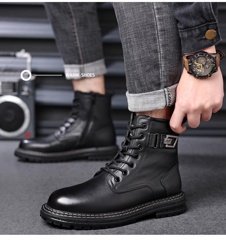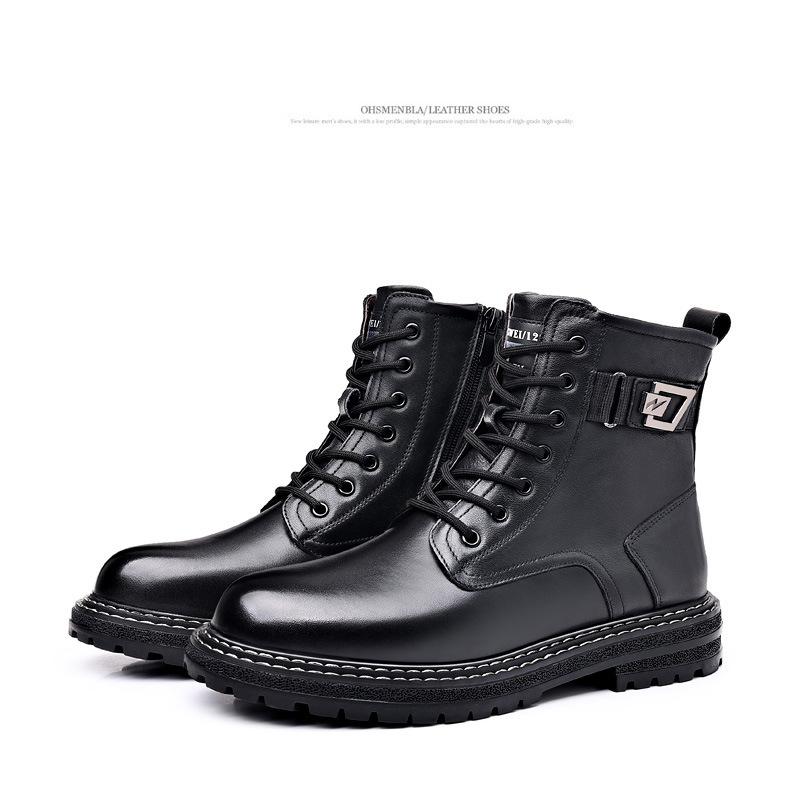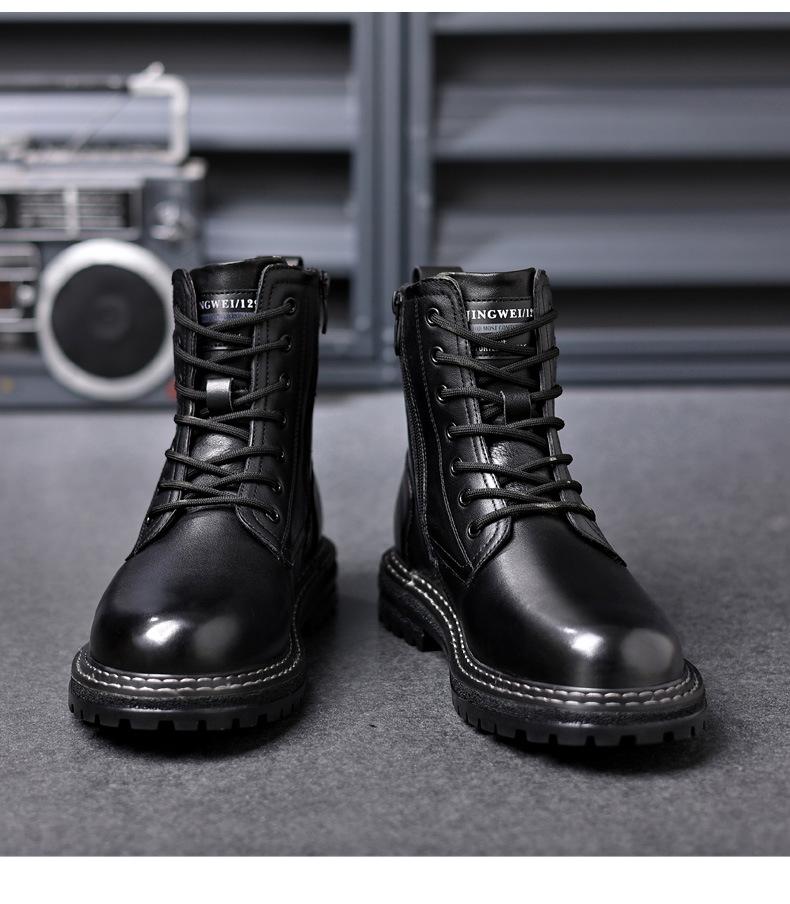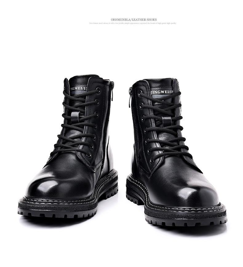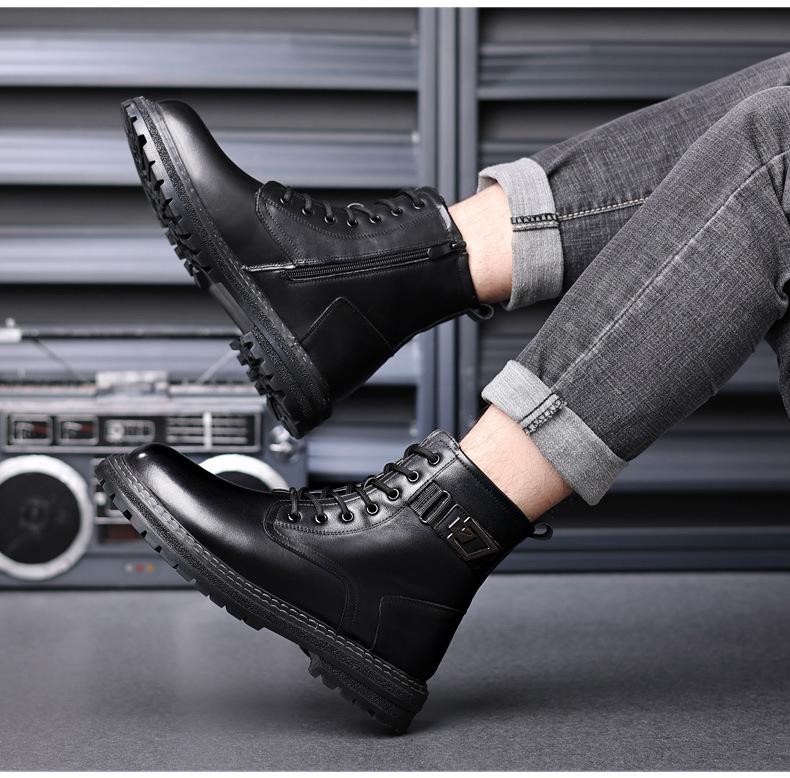 Botas Cool Martin Masculinas Sapatos Masculinos Cano Alto Couro Genuíno Botas de Trabalho Britânicas Pretas Cano Médio Botas de Trabalho