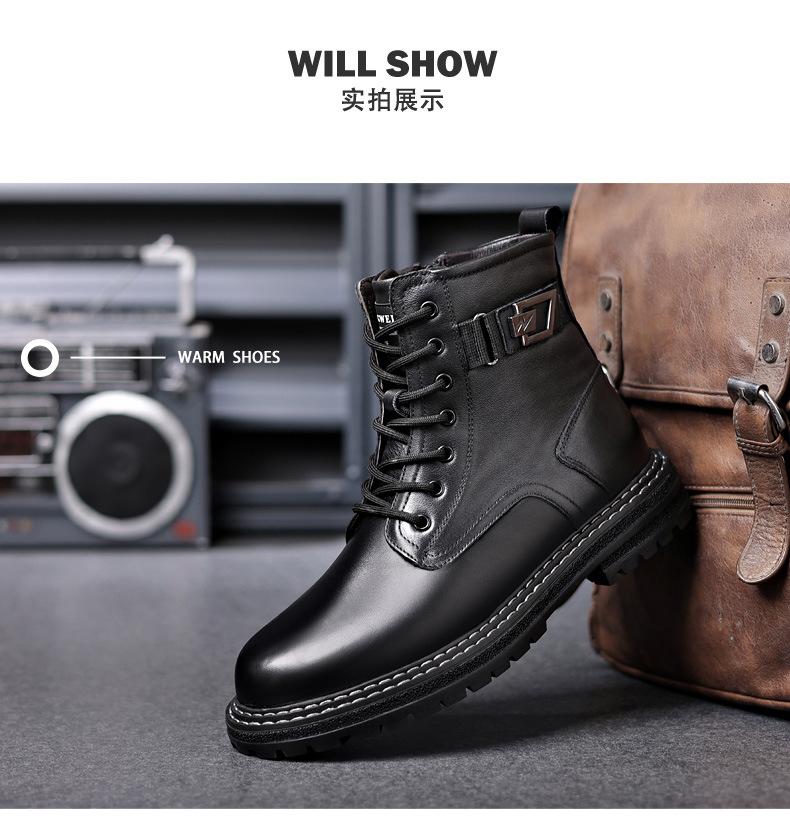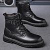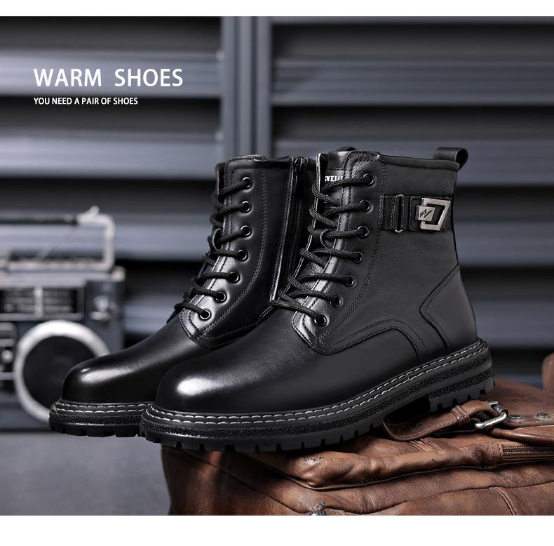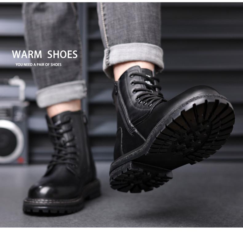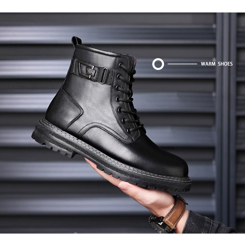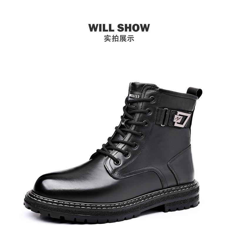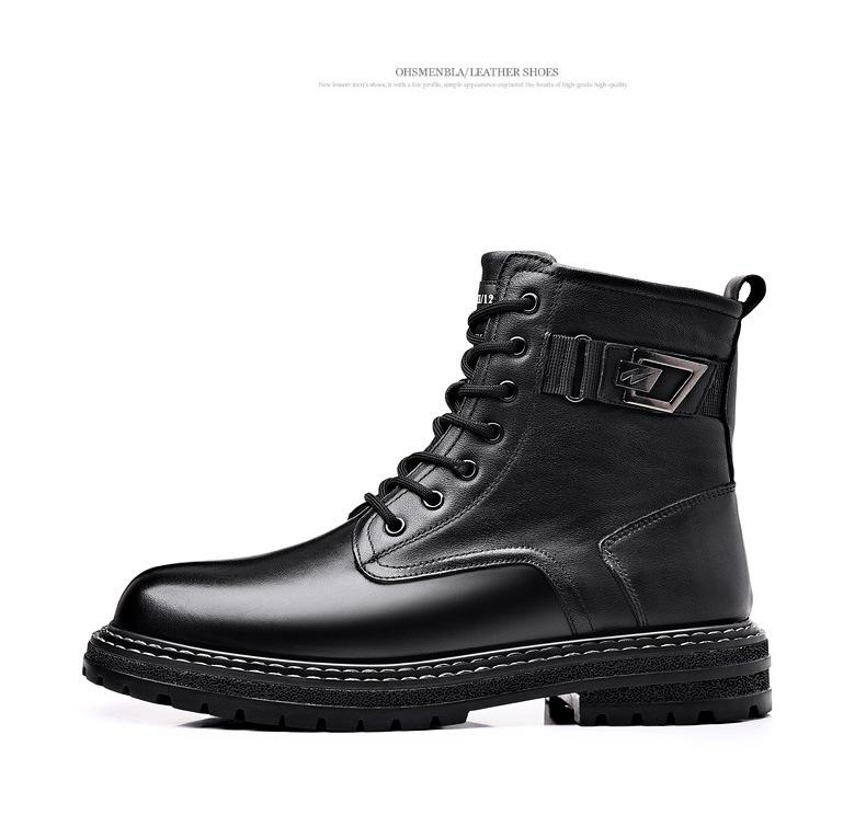 Botas Cool Martin Masculinas Sapatos Masculinos Cano Alto Couro Genuíno Botas de Trabalho Britânicas Pretas Cano Médio Botas de Trabalho