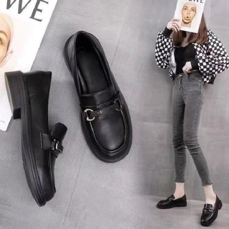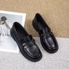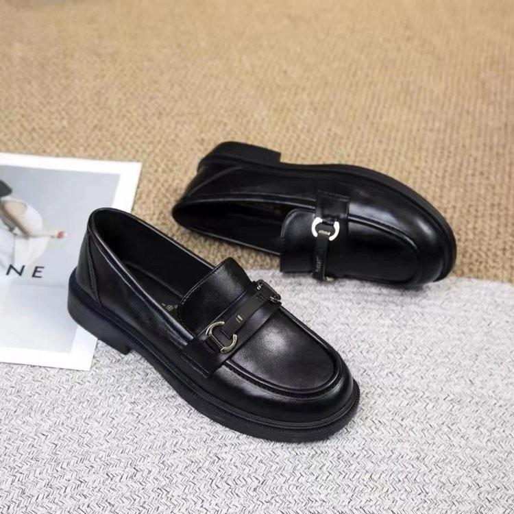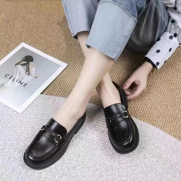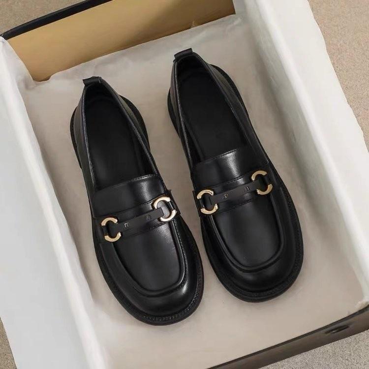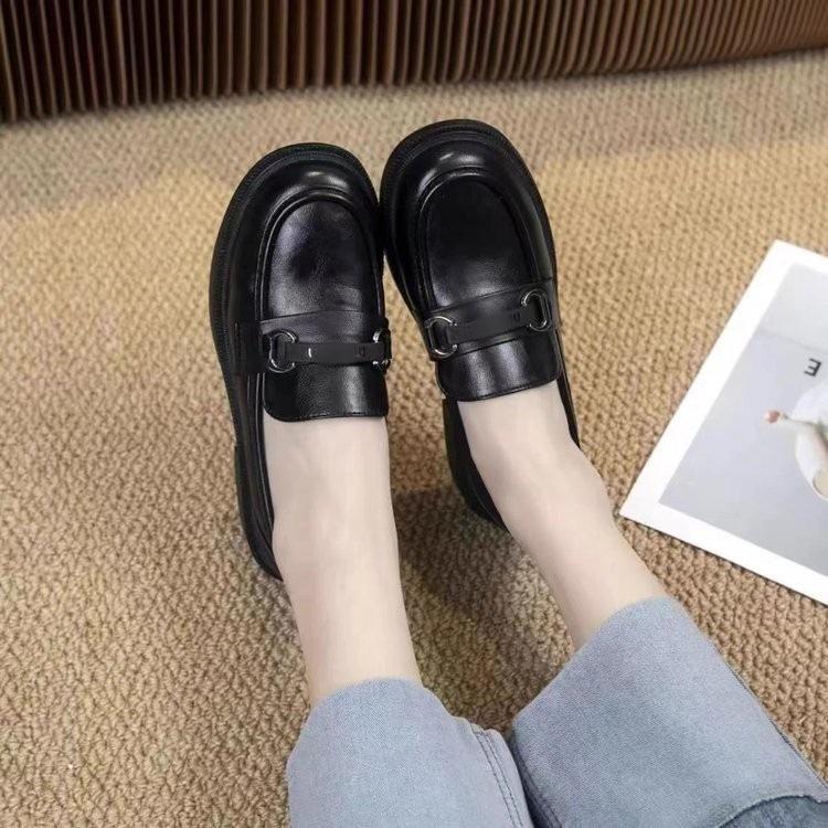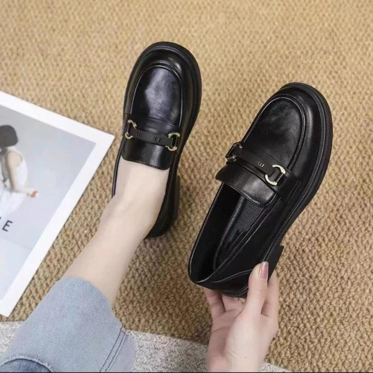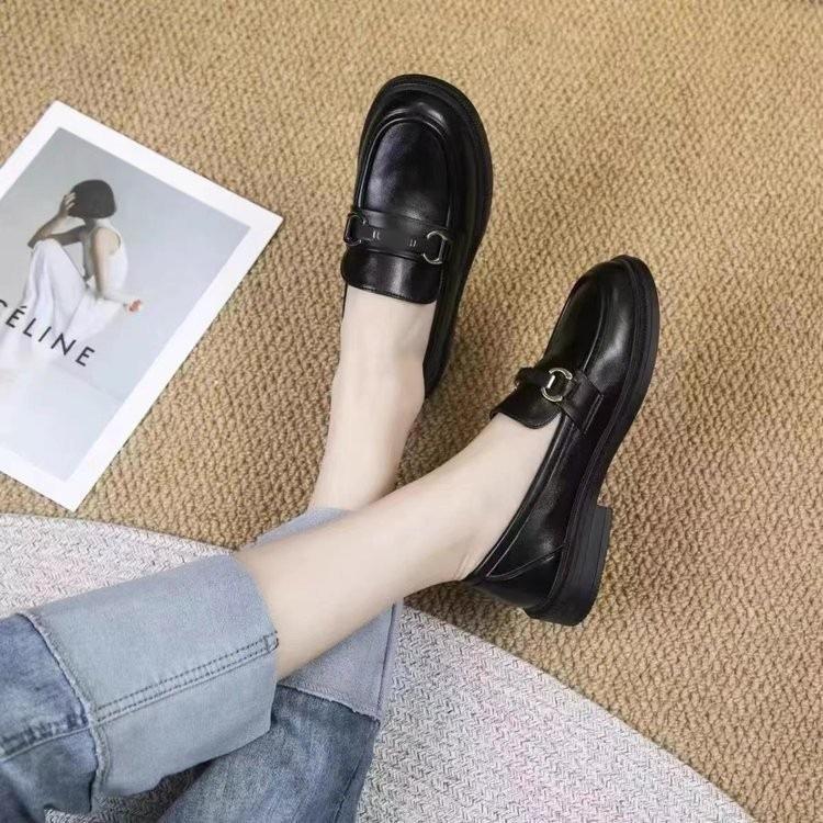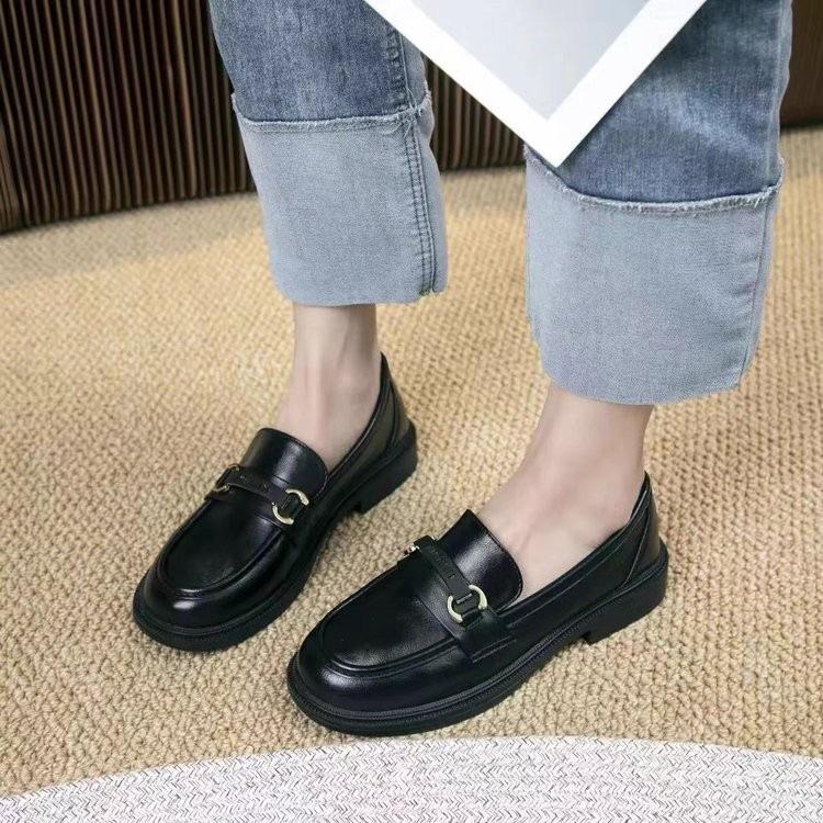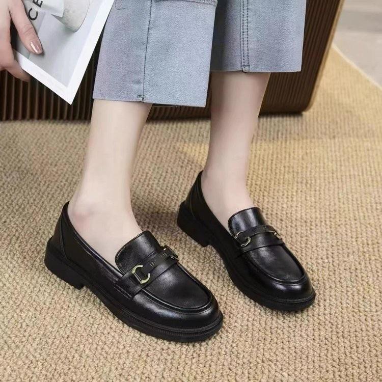 Sapatos de couro estilo britânico sola macia mocassins slip-on mulheres 2025 outono novo trabalho sapatos baixos pretos versáteis sapatos sociais