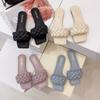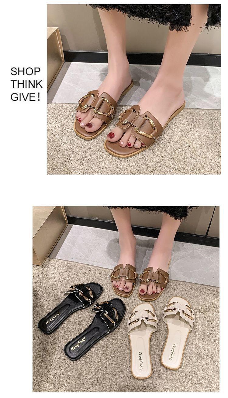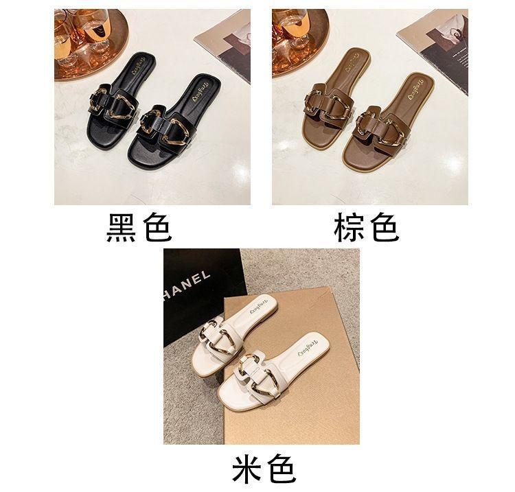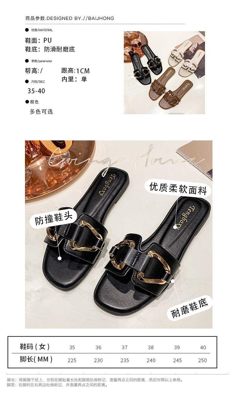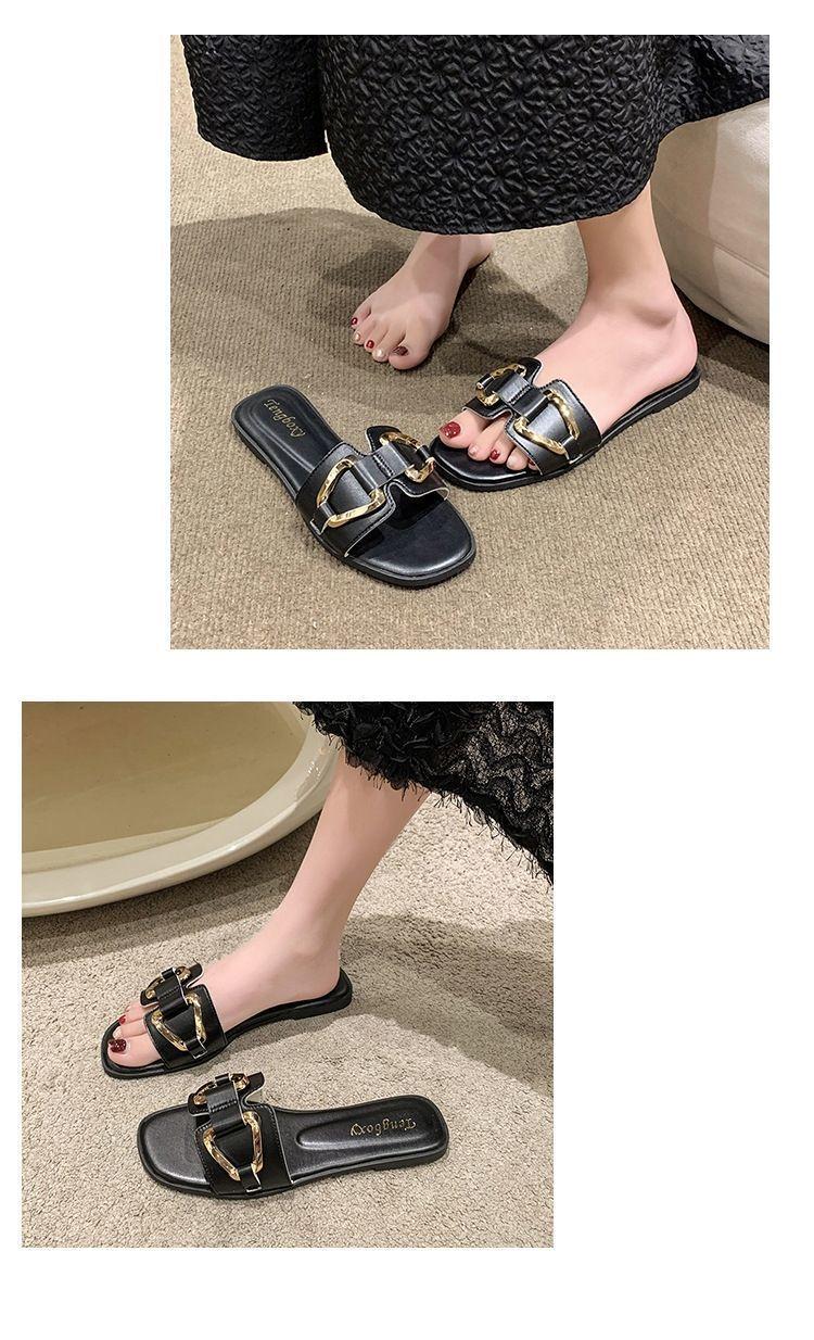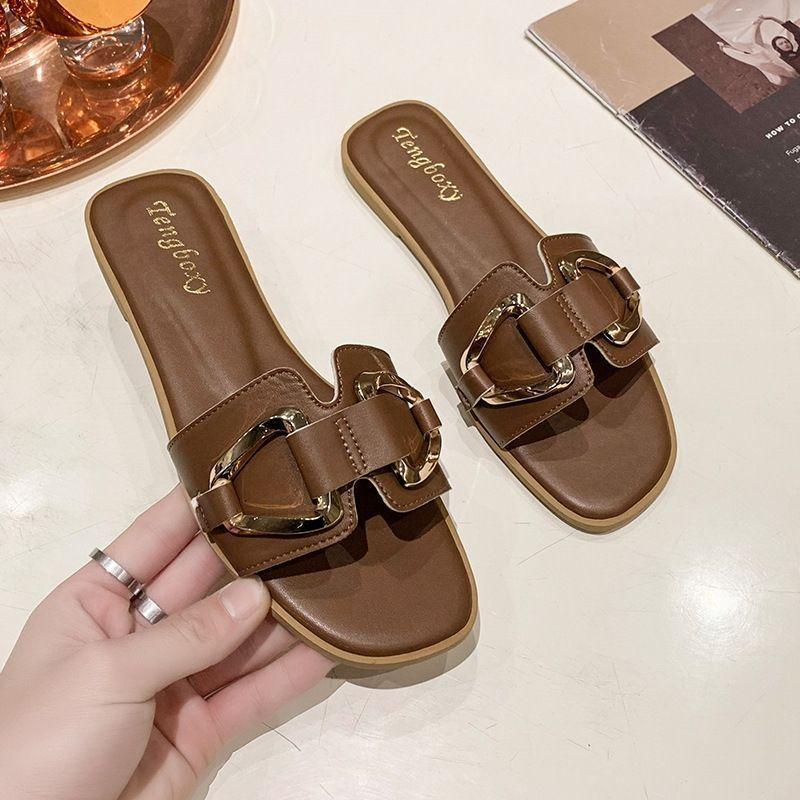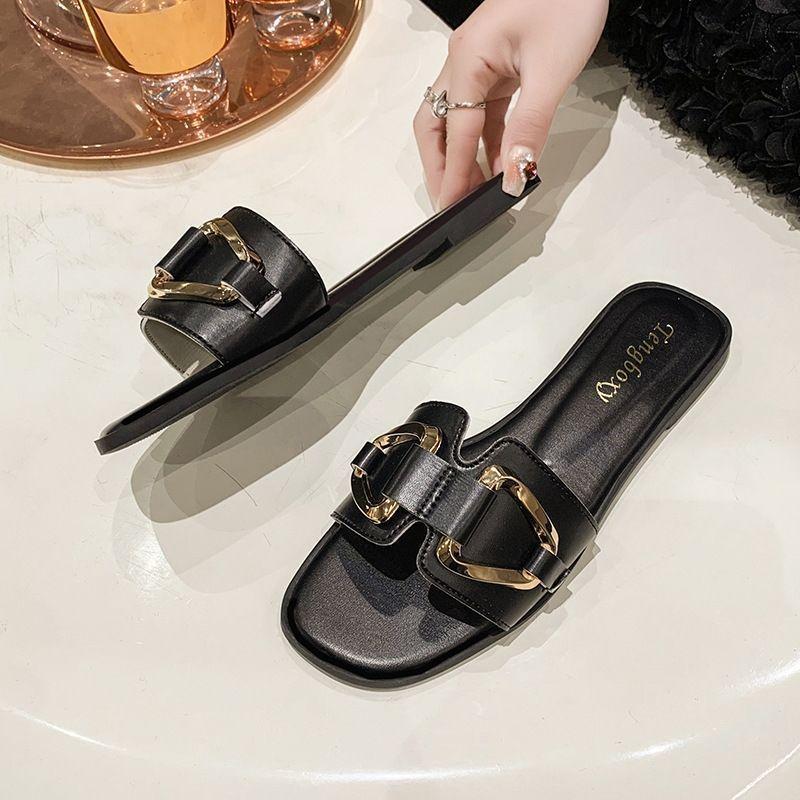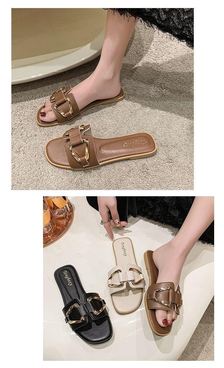 Chinelo Tamanho Grande Feminino para Comércio Exterior Transfronteiriço Mulheres 2025 Novo Estilo Verão Feminino Calçado de Exterior Fivela de Metal Sola Macia Chinelos de Uma Tira Bico Quadrado Chinelos Frescos