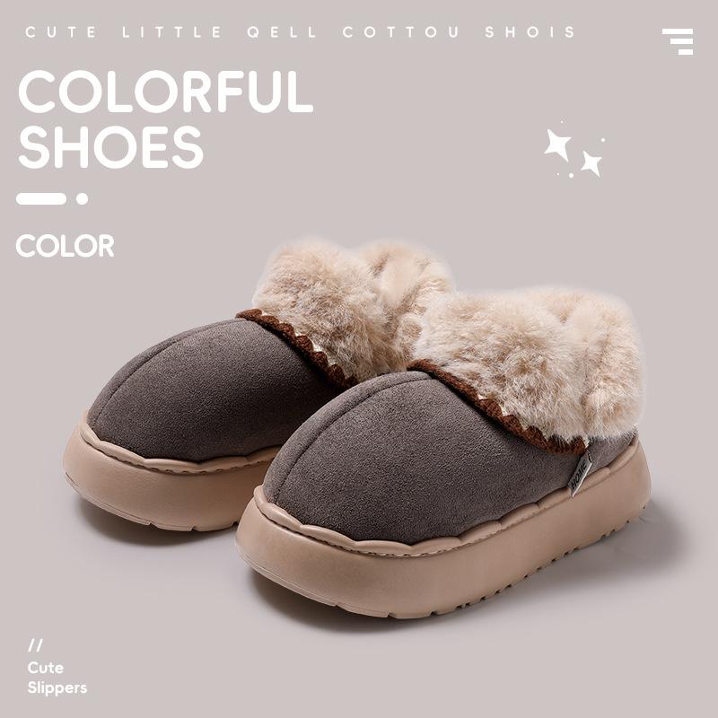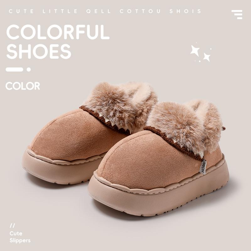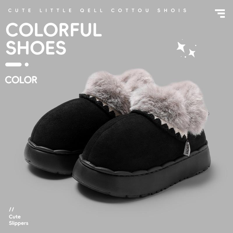 Sapatos de algodão quentes femininos para inverno, antiderrapantes, sola grossa, chinelos de casa fechados no calcanhar, inverno, domésticos, internos, chinelos de algodão felpudo