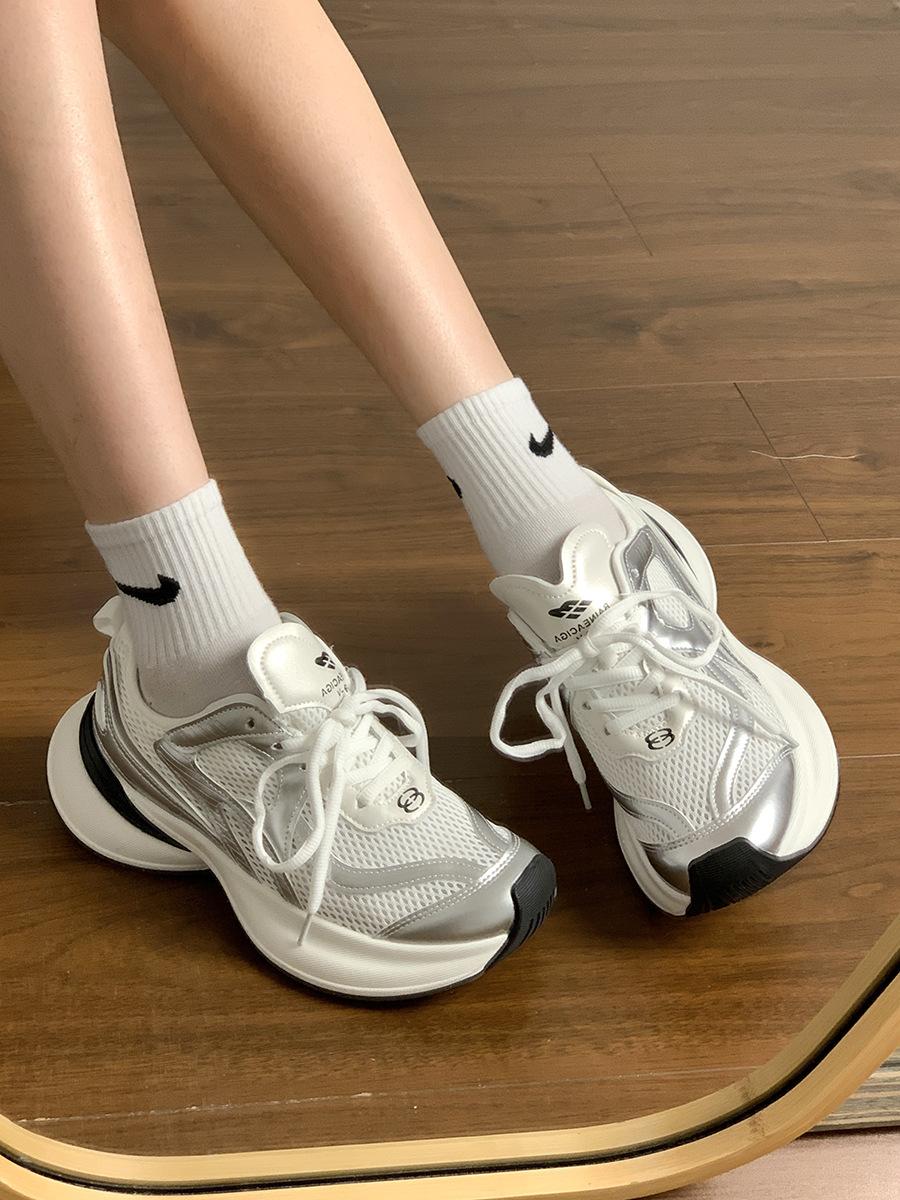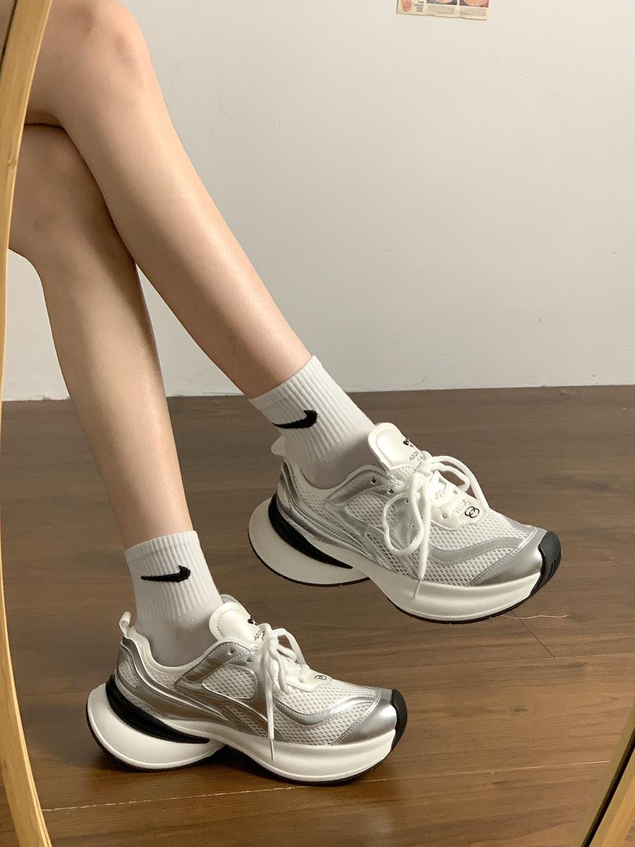 Malha Respirável 4cm Sola Macia Leve e Confortável Tênis de Pai 2025 Verão Sola Fina Grossa Corrida Esporte Sapatos Casuais
