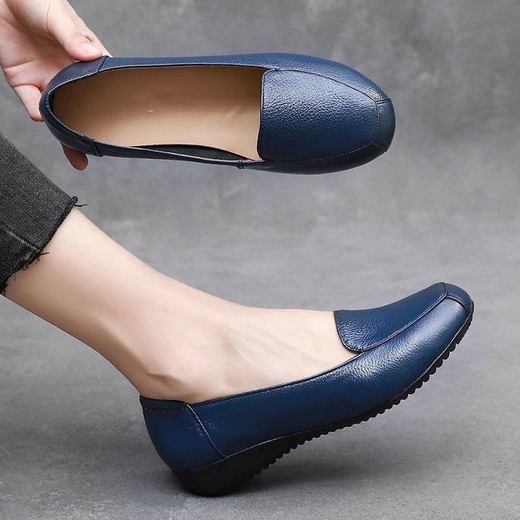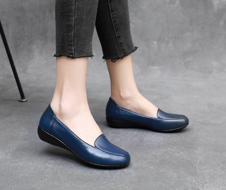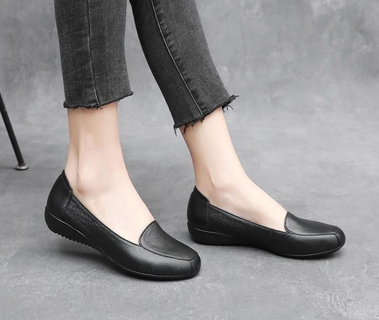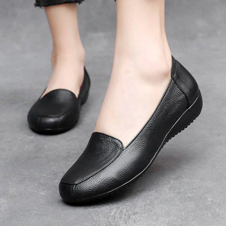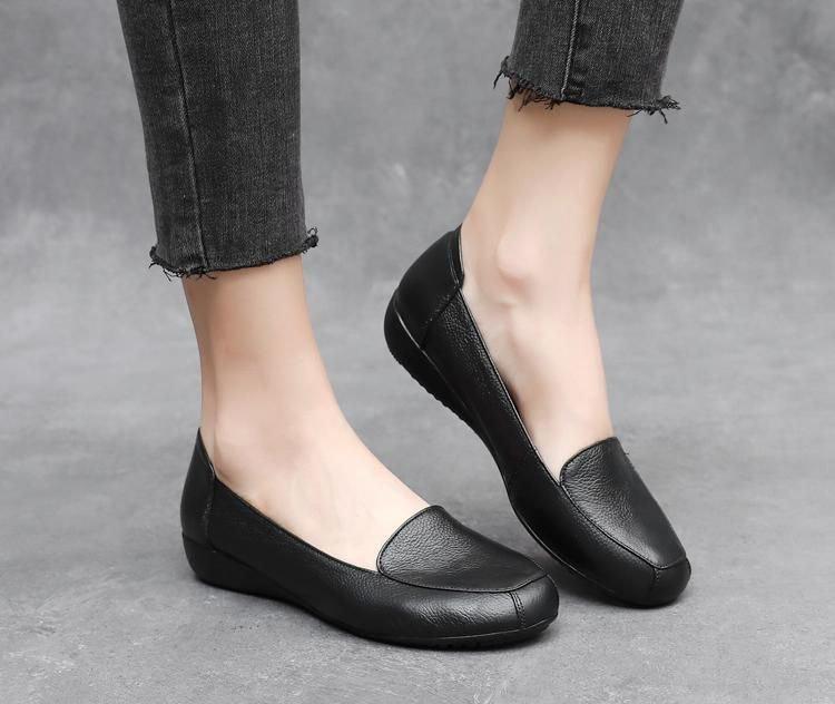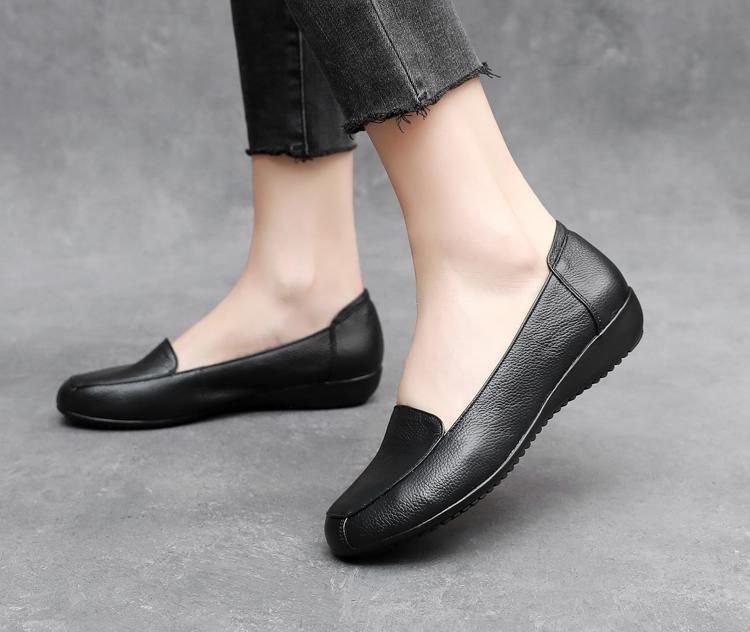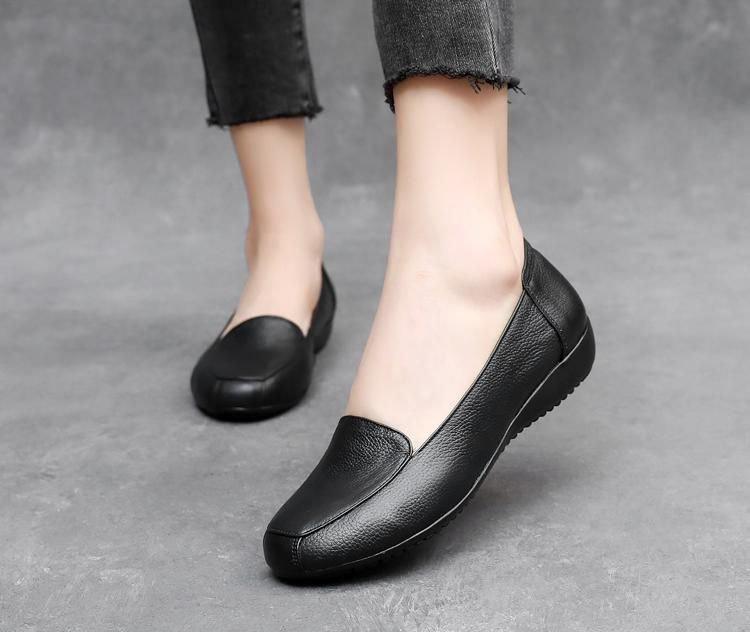 Sapatos Solteiros de Couro Macio Sola Macia Mulher 2025 Outono Novo Estilo Sapatos de Mãe Mocassins Flat Sapatos de Couro Femininos Sapatos Casuais Antiderrapantes