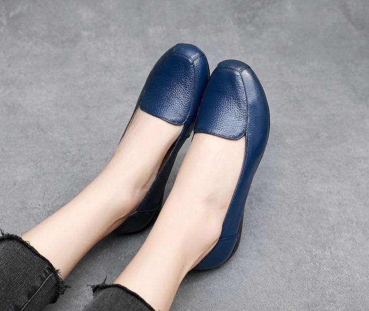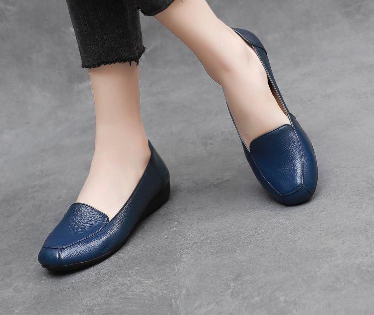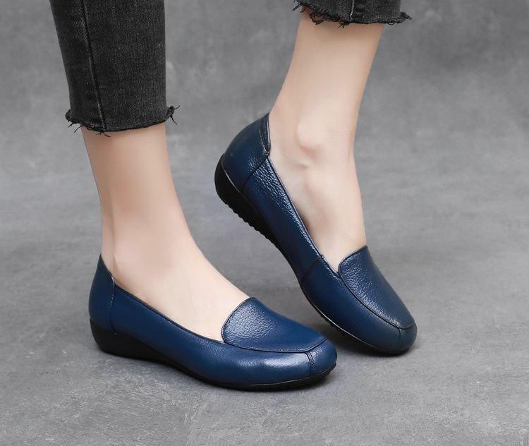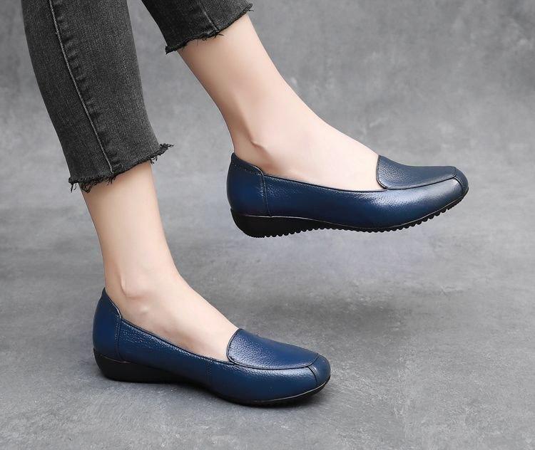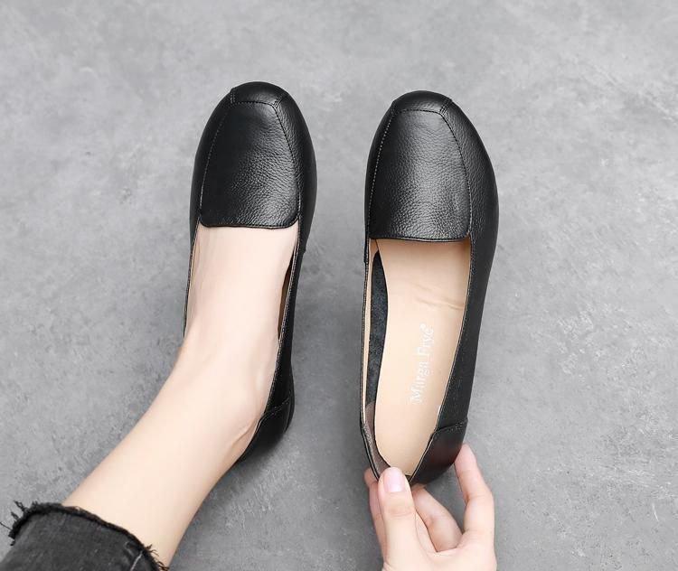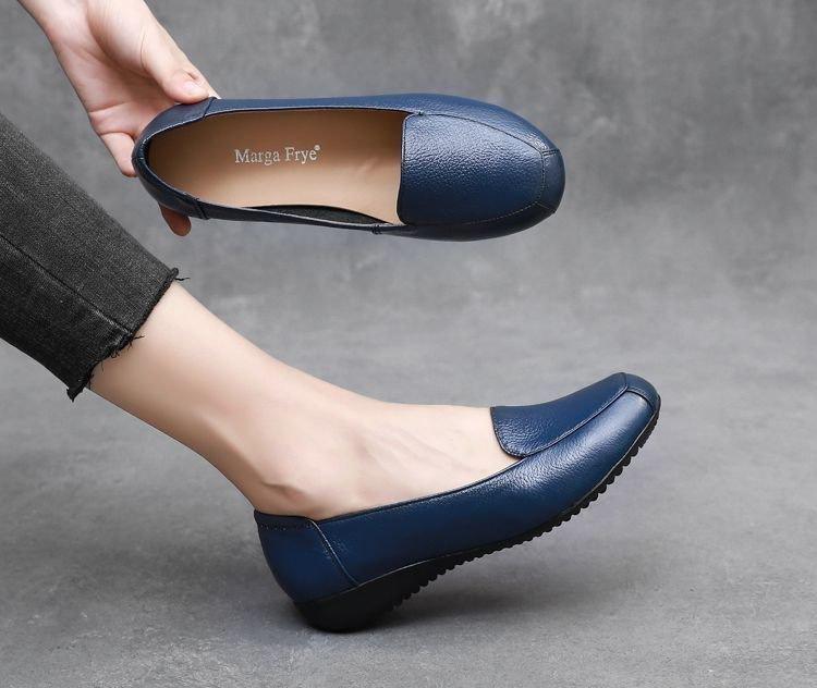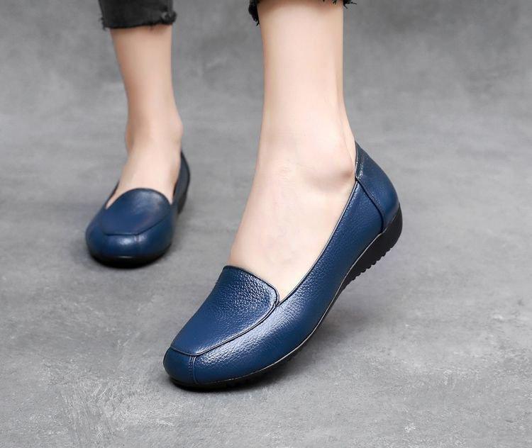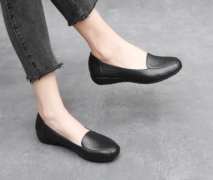Sapatos Solteiros de Couro Macio Sola Macia Mulher 2025 Outono Novo Estilo Sapatos de Mãe Mocassins Flat Sapatos de Couro Femininos Sapatos Casuais Antiderrapantes
