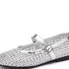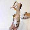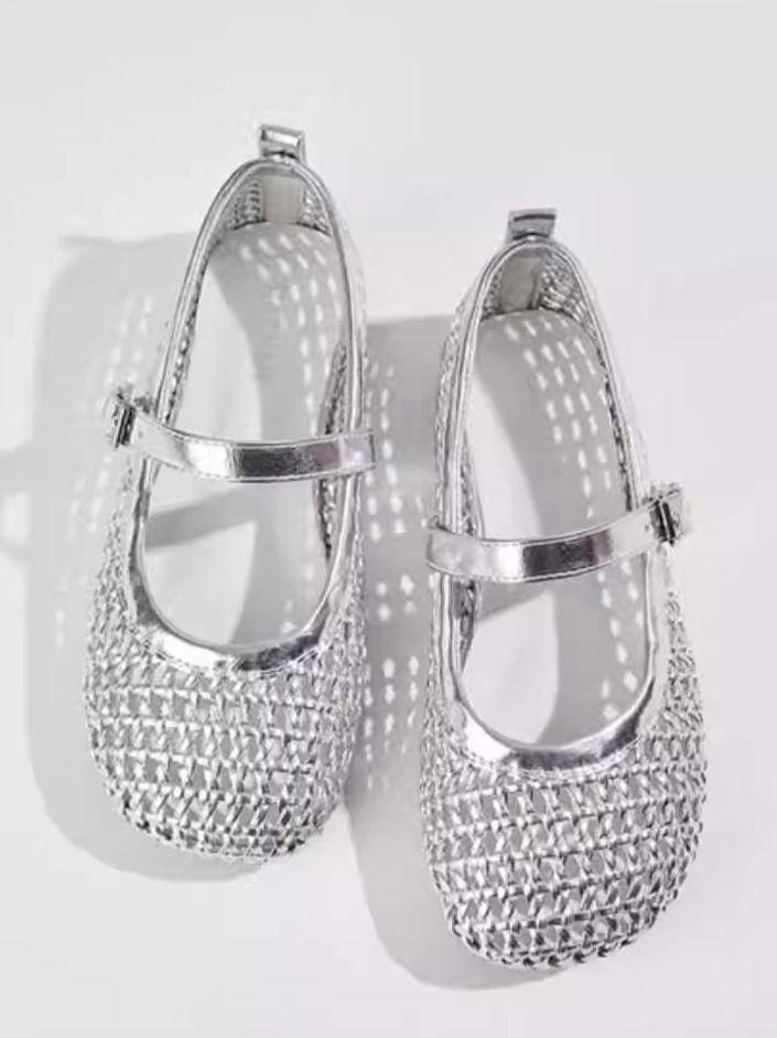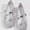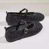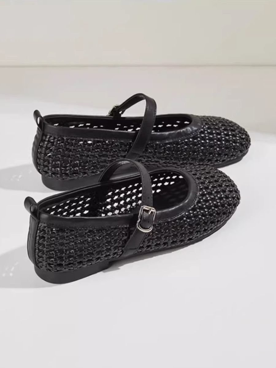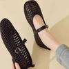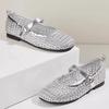Sandálias Romanas Vazadas Tricotadas de Nicho Primavera e Verão 2025 Sapatos Mary Jane Leves e Respiráveis de Bico Redondo Sapatos Rasteiros para Mulheres