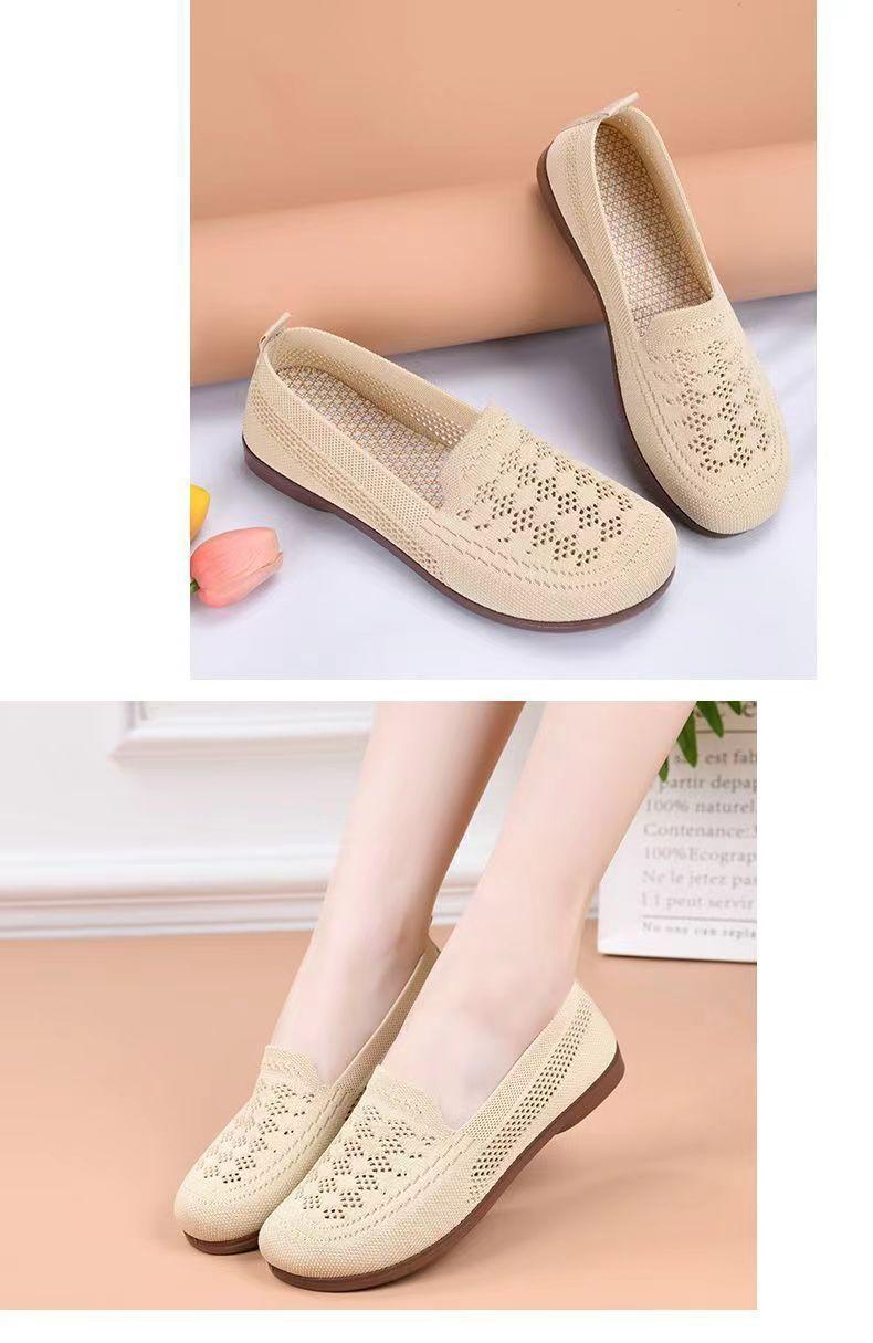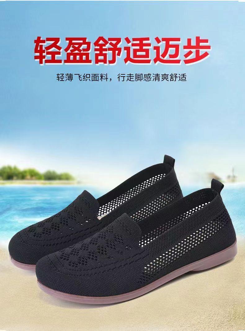 Verão Novo Sapatos de Pano Velhos de Pequim Mulheres Vazados Respiráveis Sapatos de Malha Sola Macia Slip-on Sapatos de Mãe Sapatos para Idosos