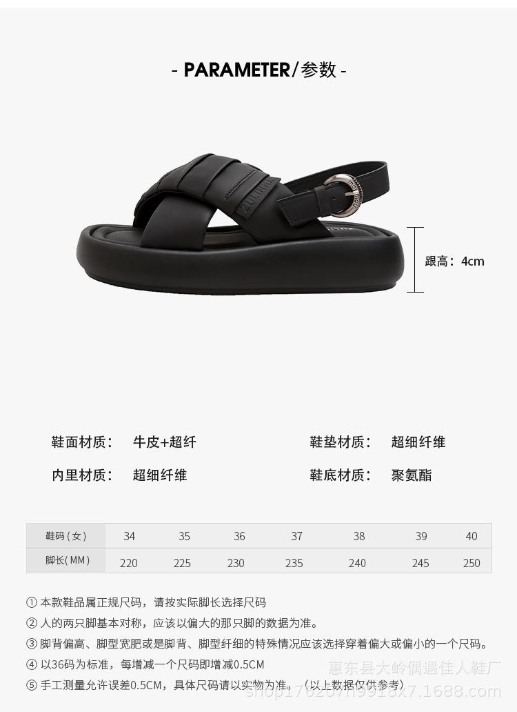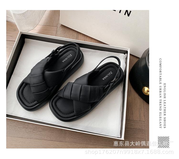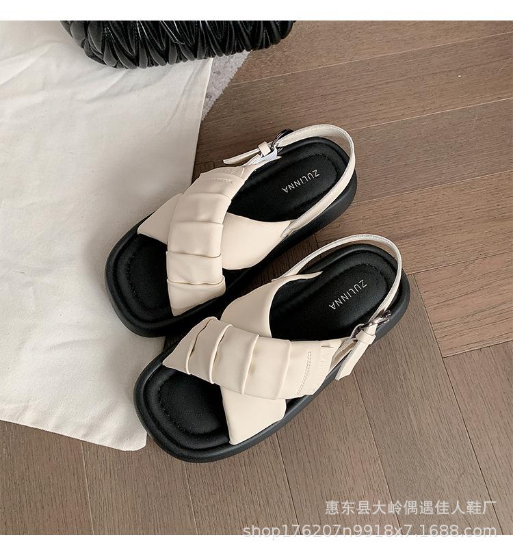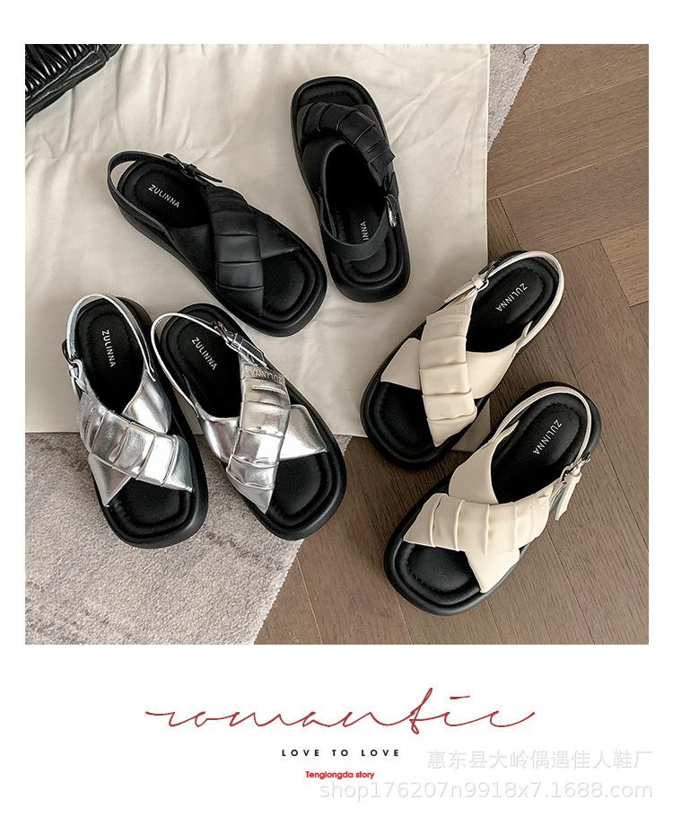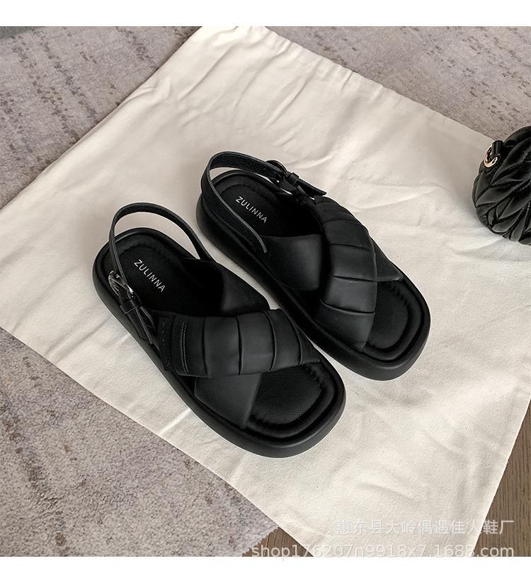 Verão 2024 Novo Sola Grossa Cruz Dedo Aberto Praia Sapatos Femininos Moda Casual Combina com Tudo Confortável Férias Sandálias Romanas