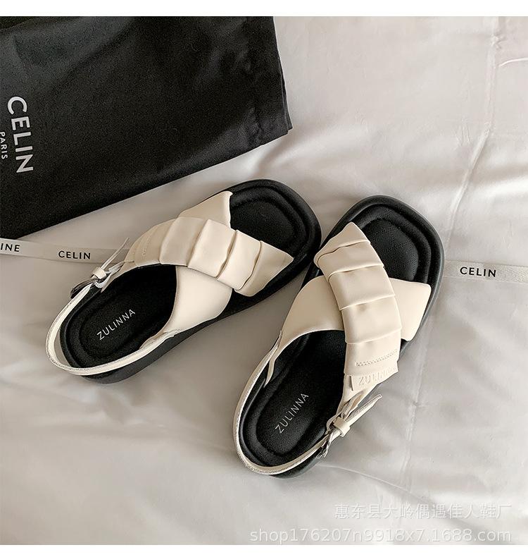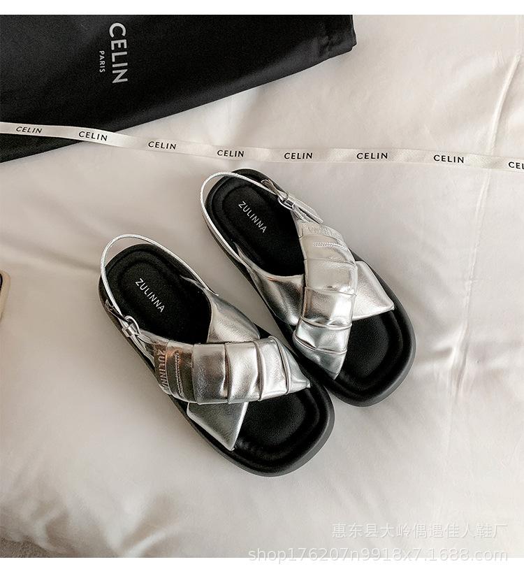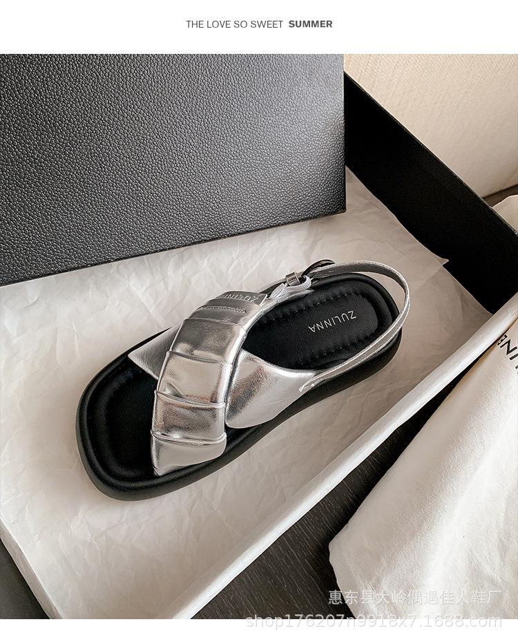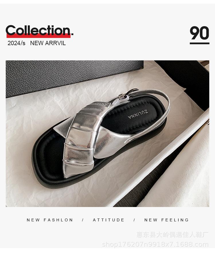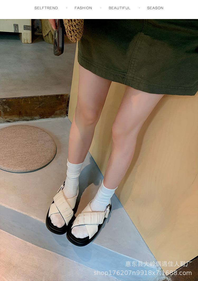 Verão 2024 Novo Sola Grossa Cruz Dedo Aberto Praia Sapatos Femininos Moda Casual Combina com Tudo Confortável Férias Sandálias Romanas