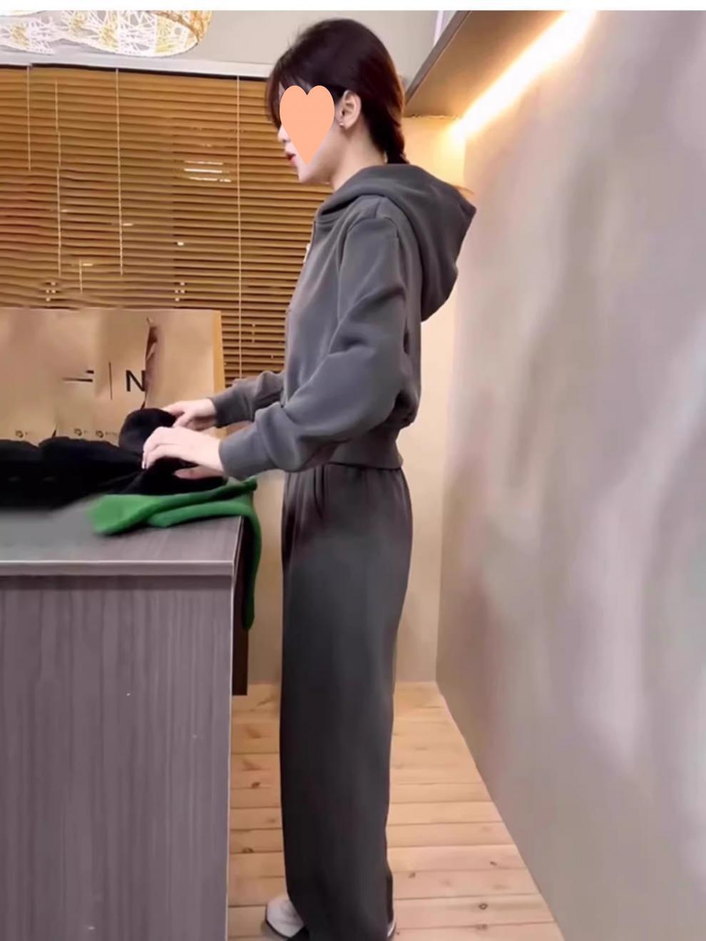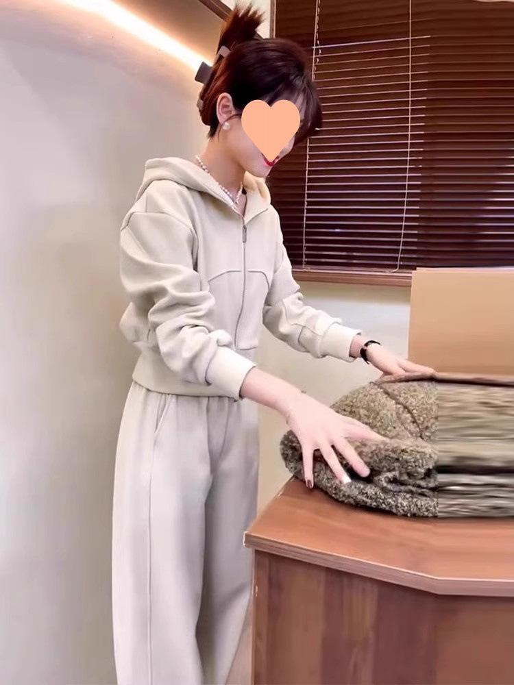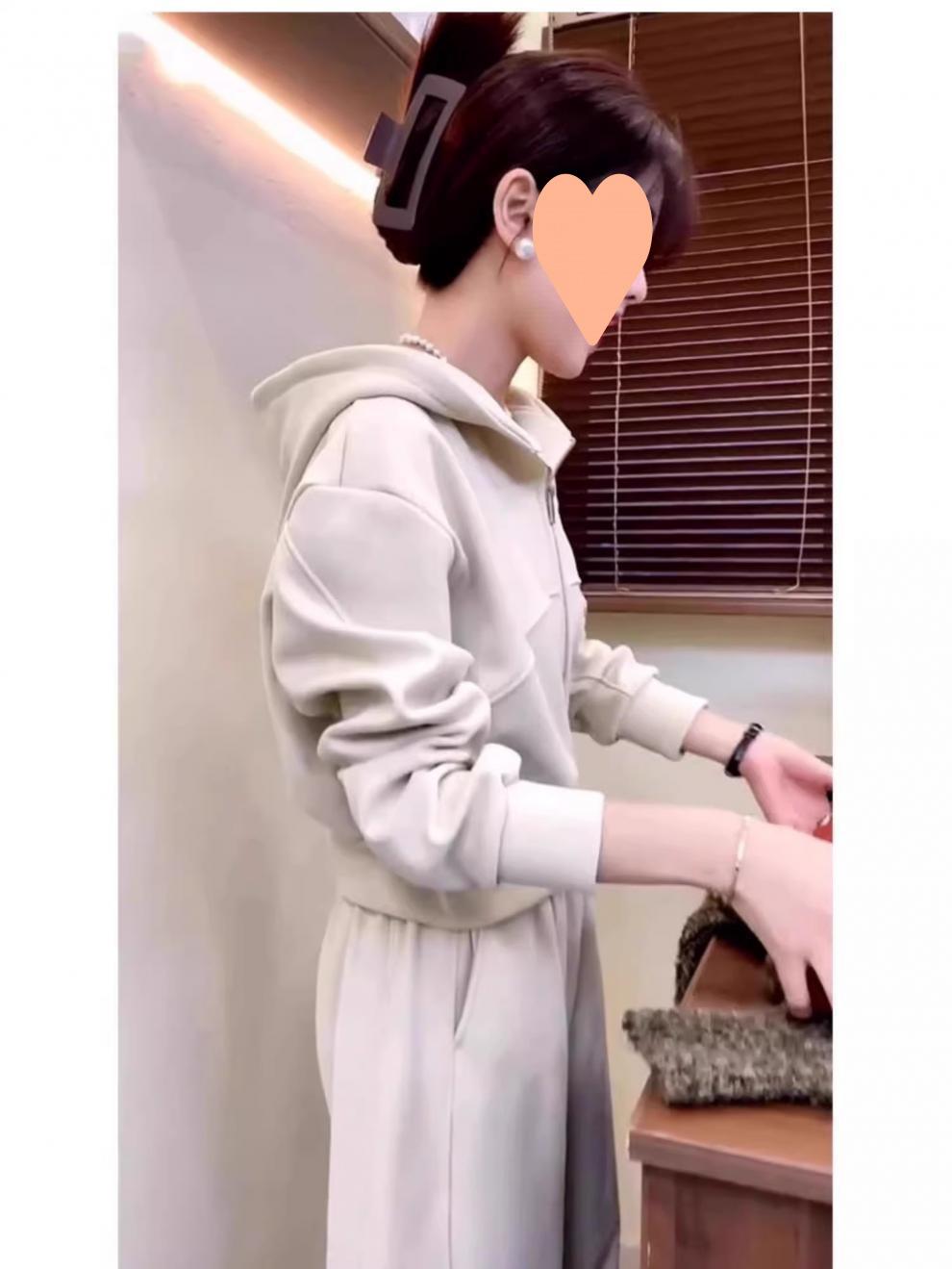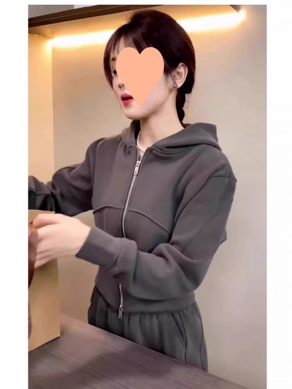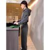 Conjunto de roupa esportiva de moda de alta qualidade para mulheres, primavera e outono, solto, emagrecedor, moletom curto com capuz casual, conjunto de duas peças, para corrida