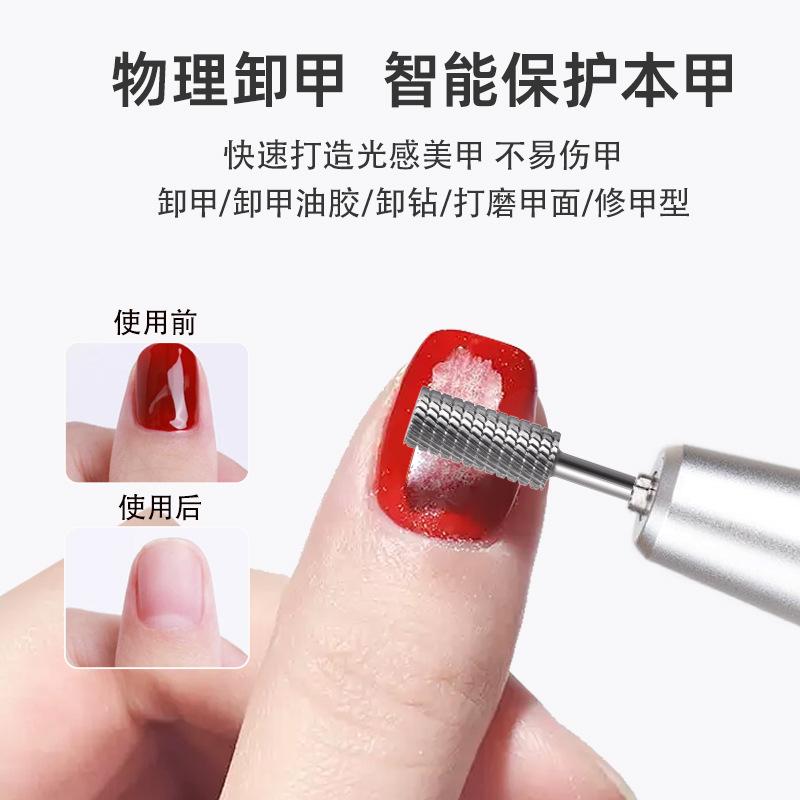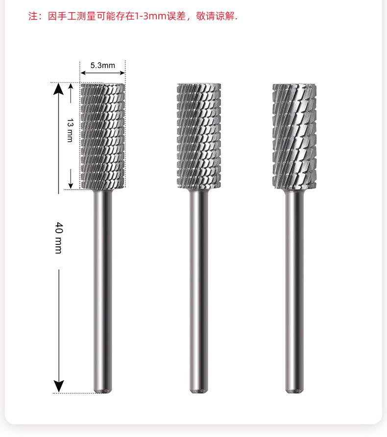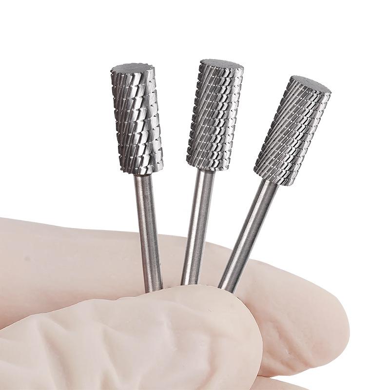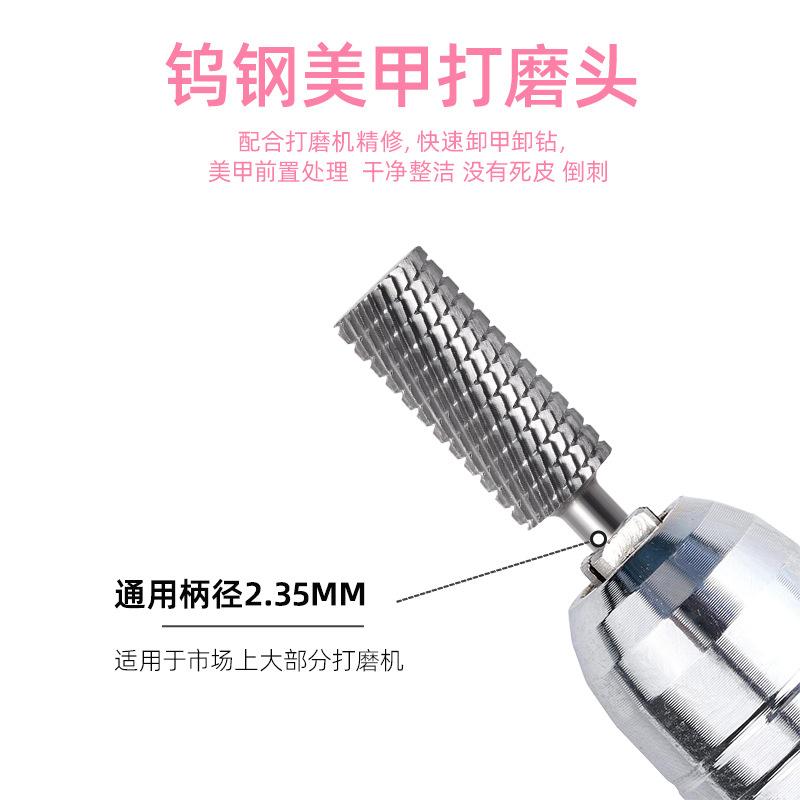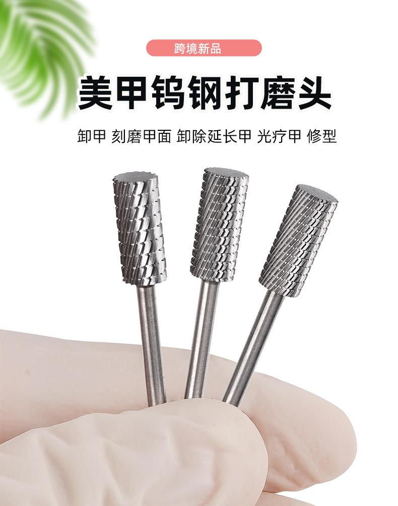 Cabeça de Polimento de Unhas de Aço Tungstênio de Cabeça Chata, Broca de Liga para Remoção de Unhas, Dente Trapezoidal Polimento Bidirecional Manicure e Conjunto de Ferramentas de Manicure