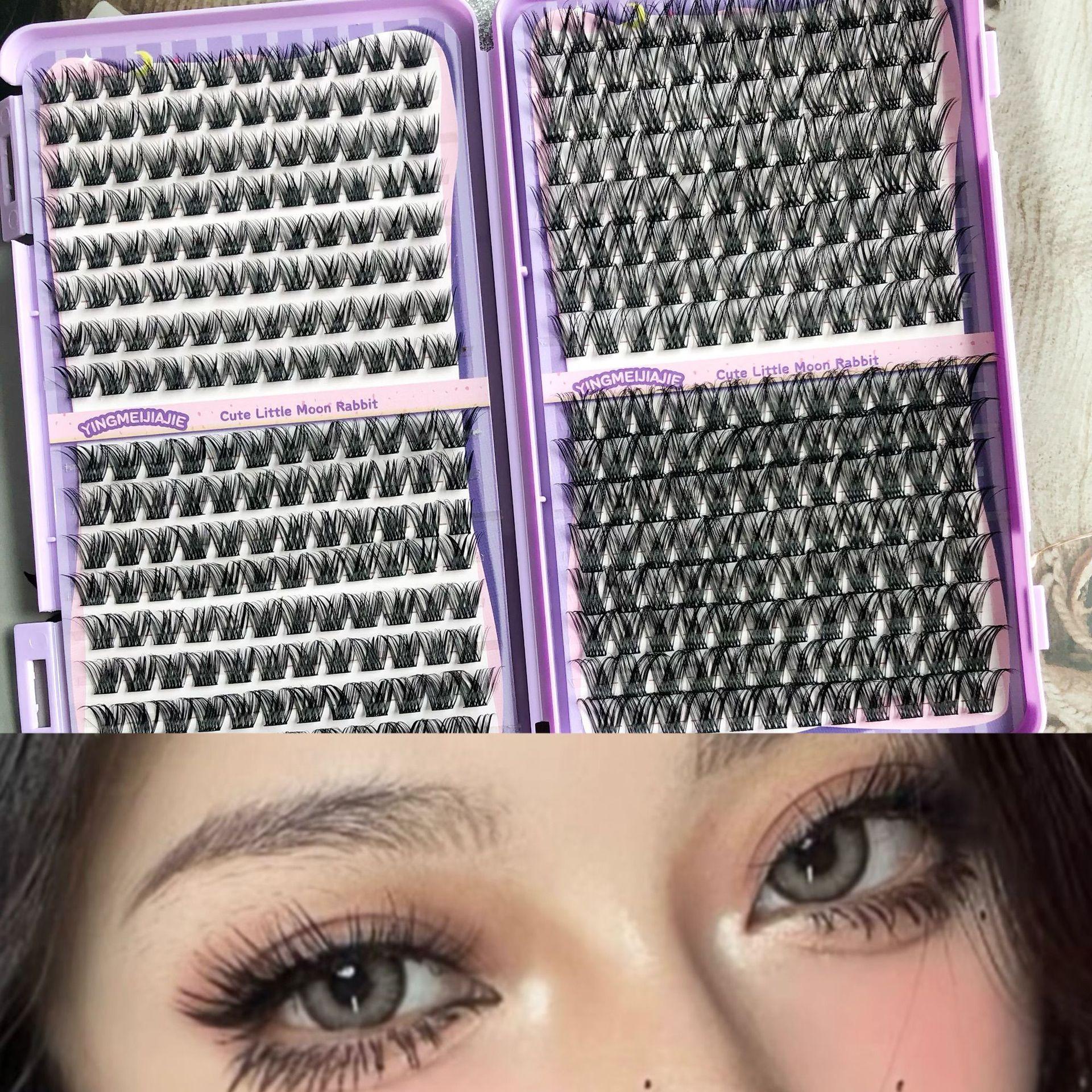 Cílios postiços transfronteiriços sem cola cílios postiços em cluster único estilo vivo e fofo fácil para iniciantes usarem cílios postiços sem cola