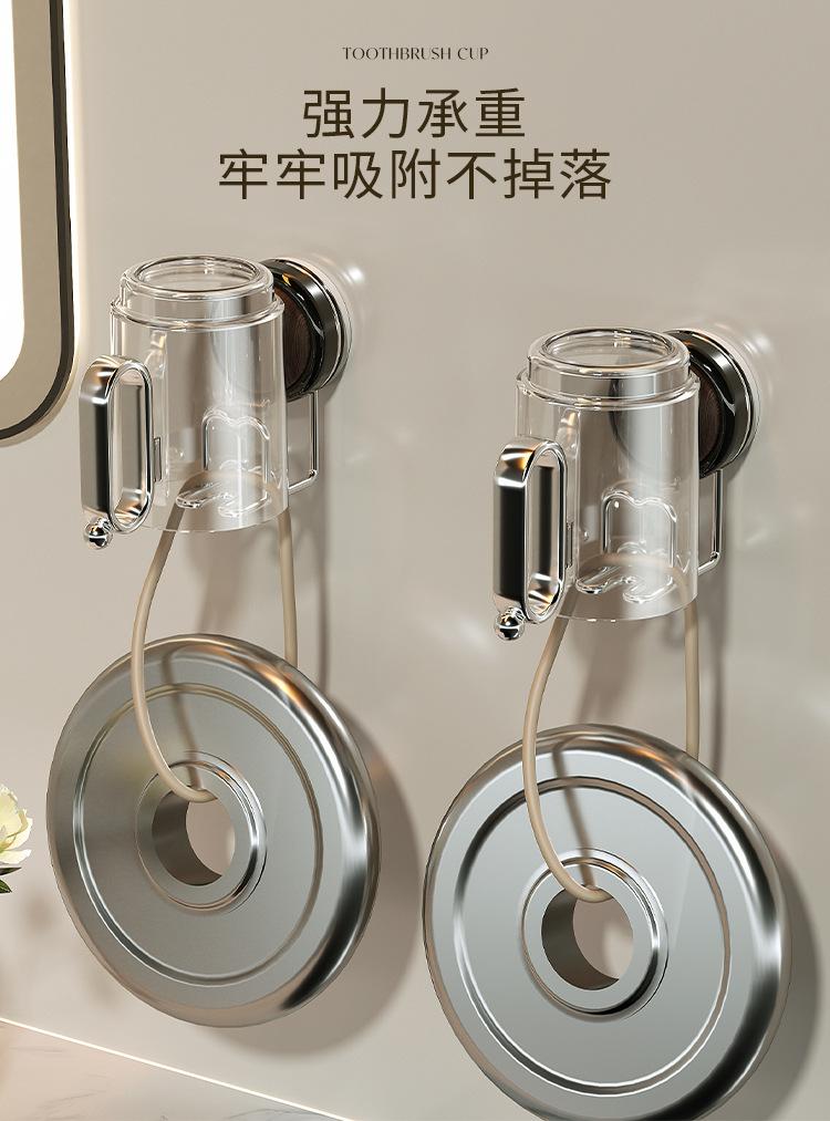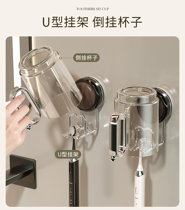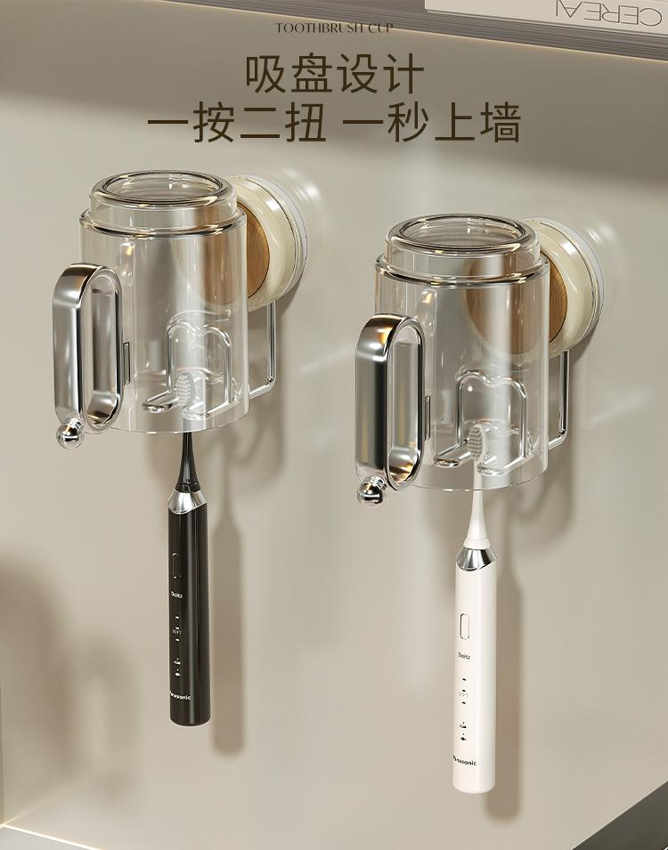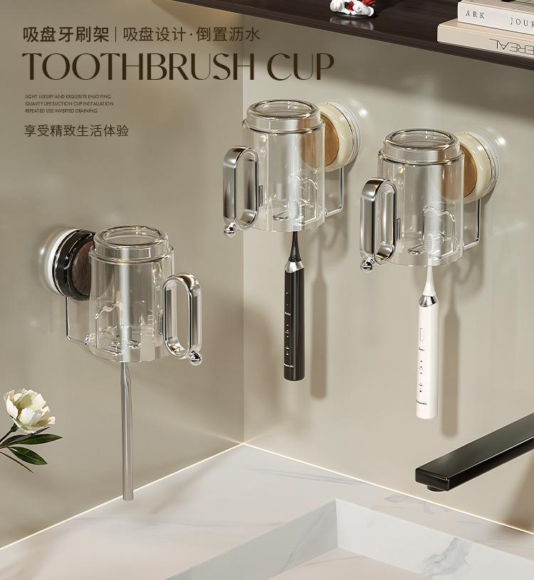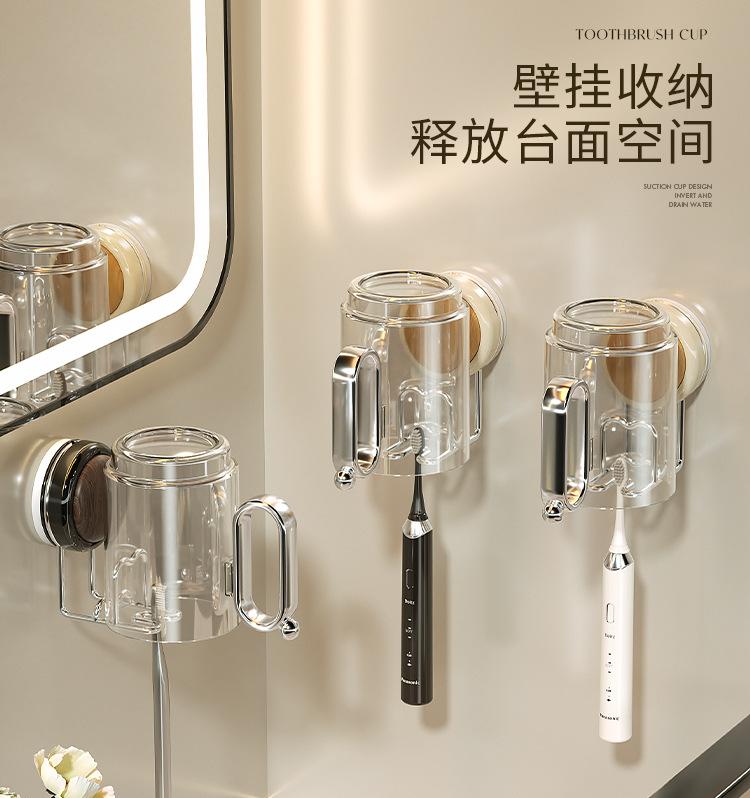 Porta-Escovas de Dentes com Ventosa Sem Furos Banheiro com Alça Copo para Escova de Dentes Copo para Enxaguatório Bucal Suporte Montado na Parede Atacado