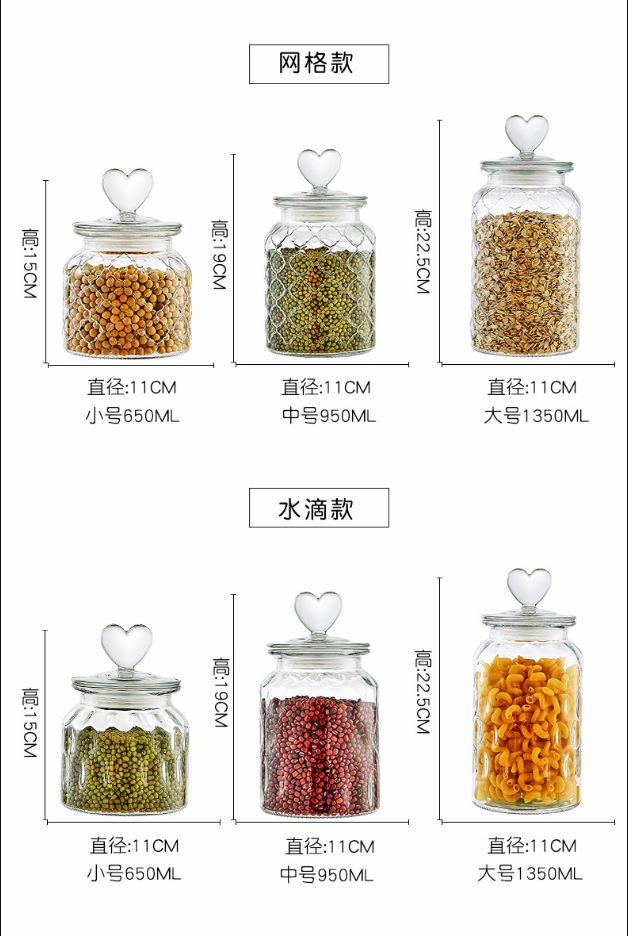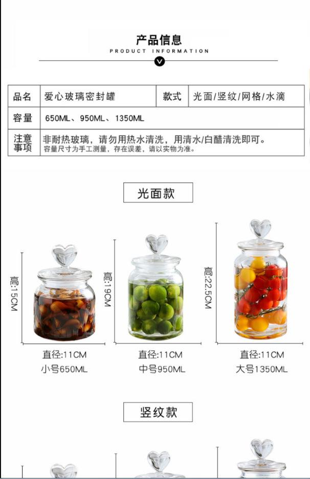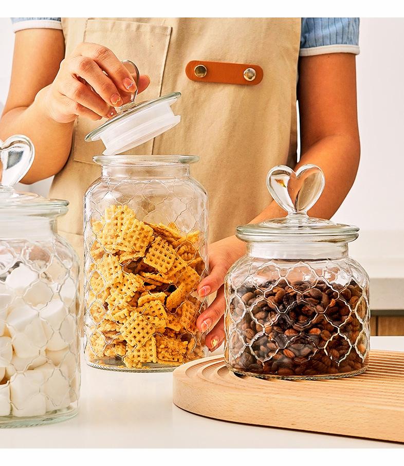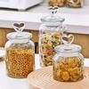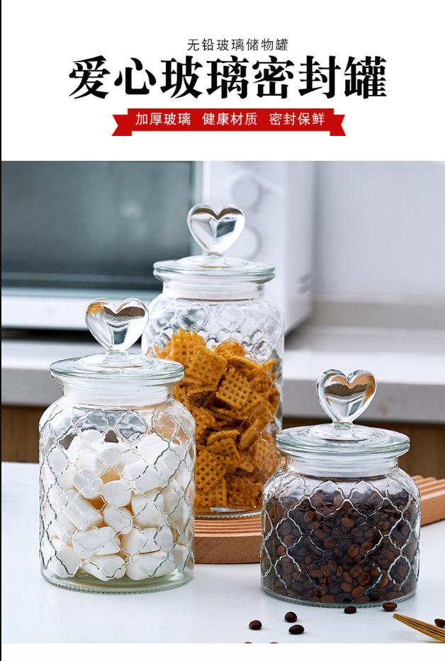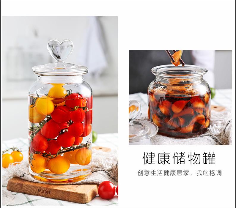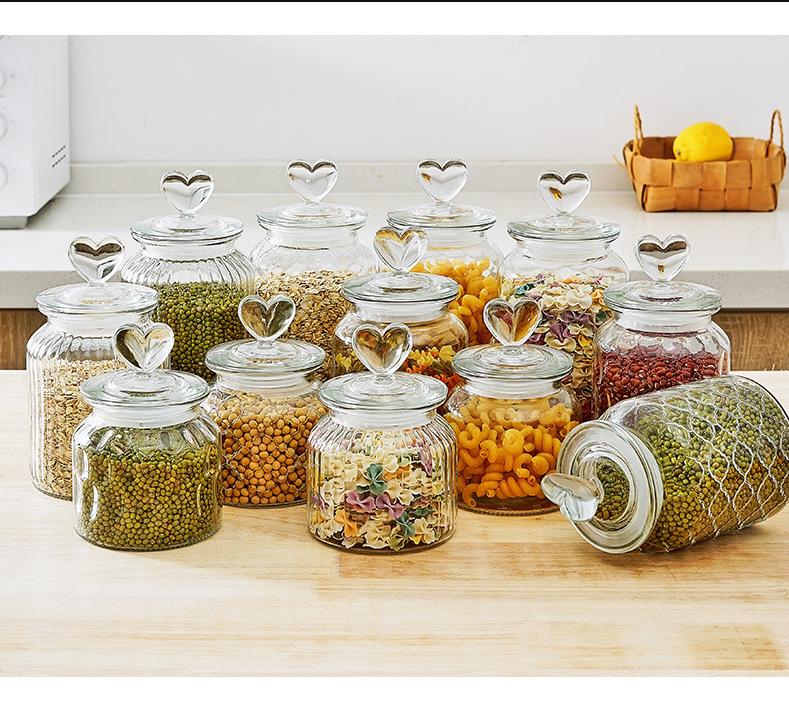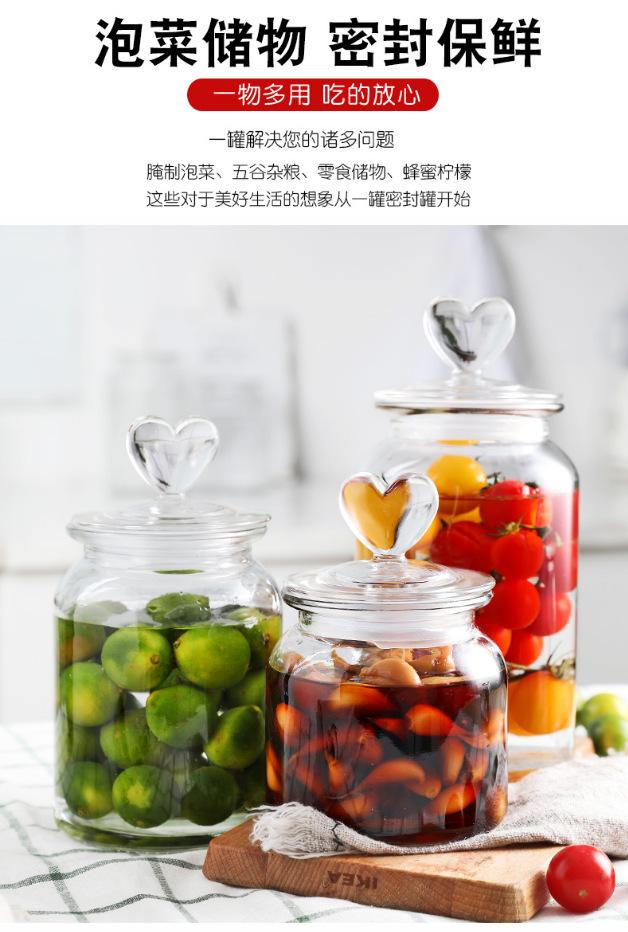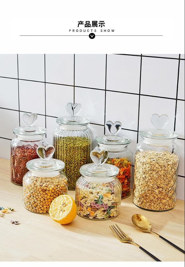 Pote Hermético de Vidro Colorido Garrafa de Vidro Coração Pote para Doces e Snacks Doméstico Pote para Armazenamento de Grãos Alimentares de Cozinha Pote para Picles
