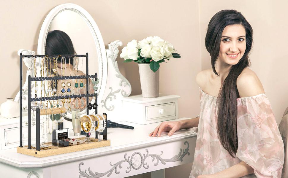 Suporte de Exibição de Brincos de Grande Capacidade, Suporte de Joias, Suporte Doméstico para Armazenamento de Colares, Suporte de Exibição de Barraca Multicamadas de Ferro, Suporte Pendurado para Armazenamento de Pulseiras