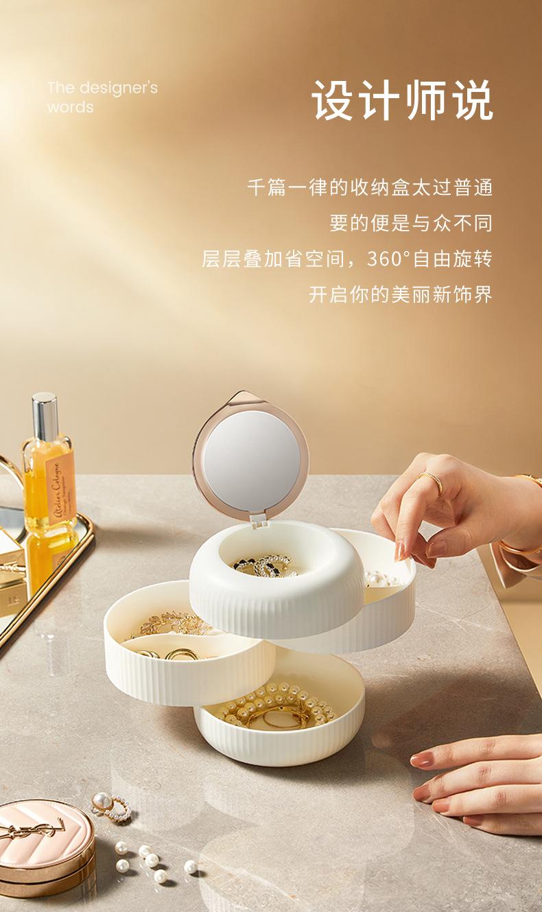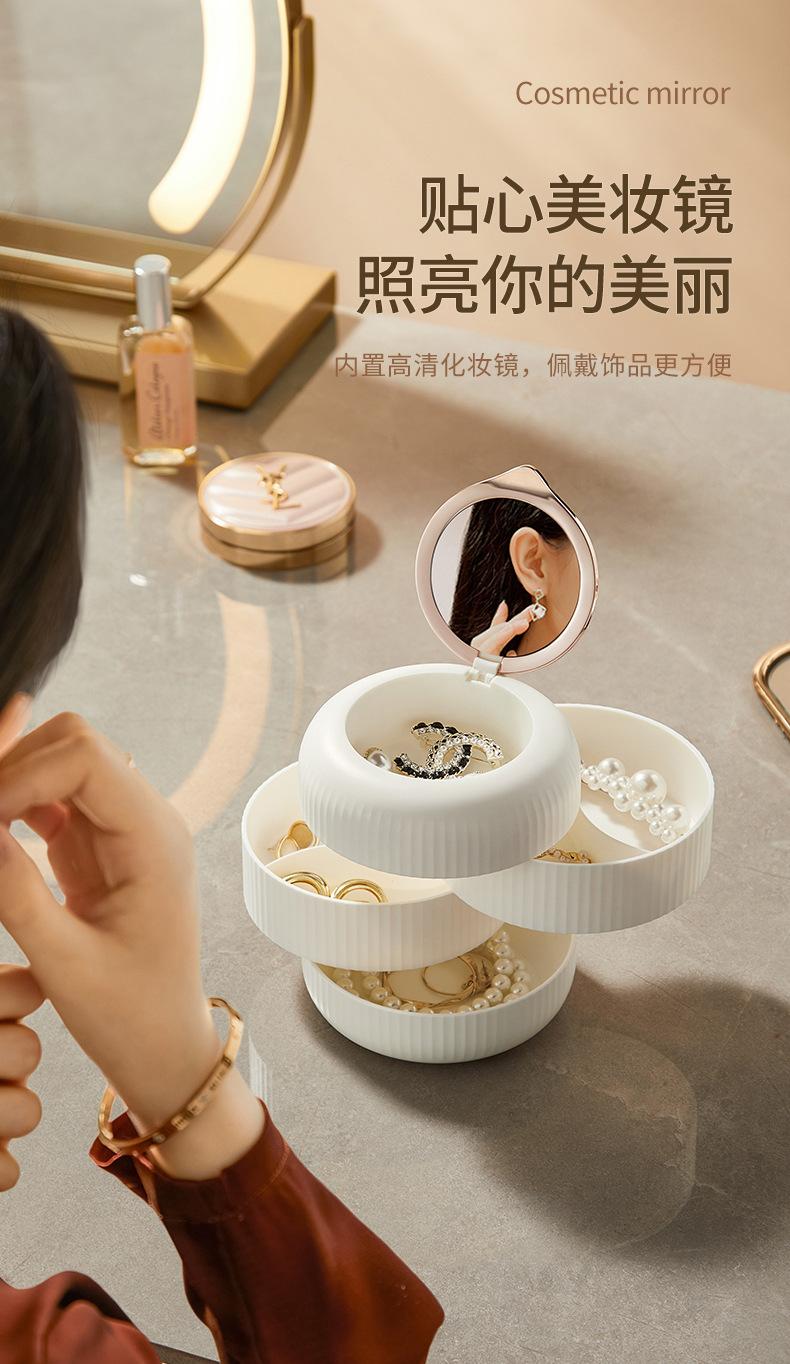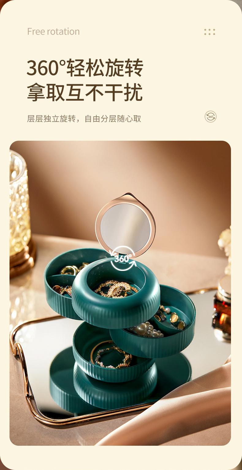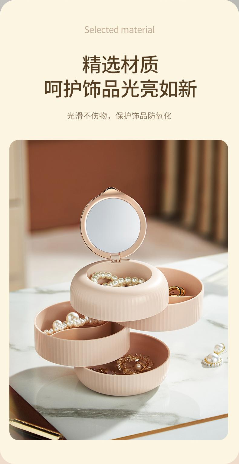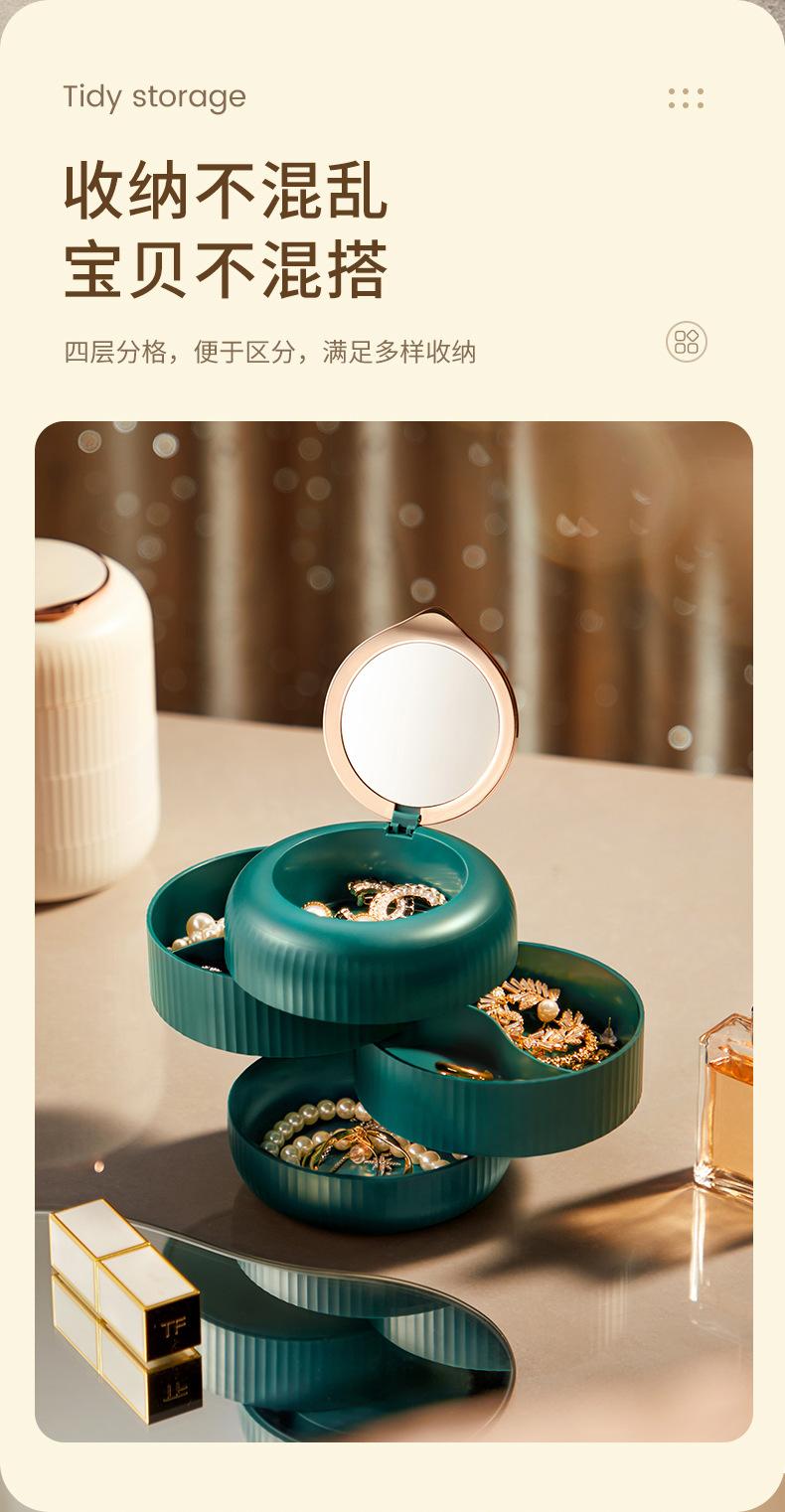 Caixa Giratória de Armazenamento de Joias Caixa de Joias de Mesa Espelho de Maquiagem Organizador de Gaveta para Joias Pequenas Colares Caixa de Joias