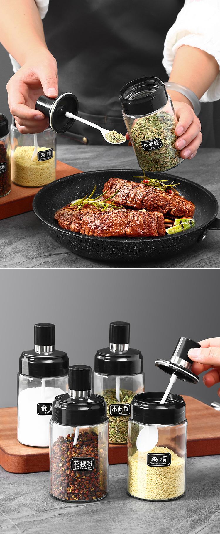 Pote de Tempero Garrafa de Tempero Vidro Saleiro Garrafa de Tempero Pote Conjunto Combinado Caixa de Tempero Armazenamento Comercial para Cozinha Doméstica