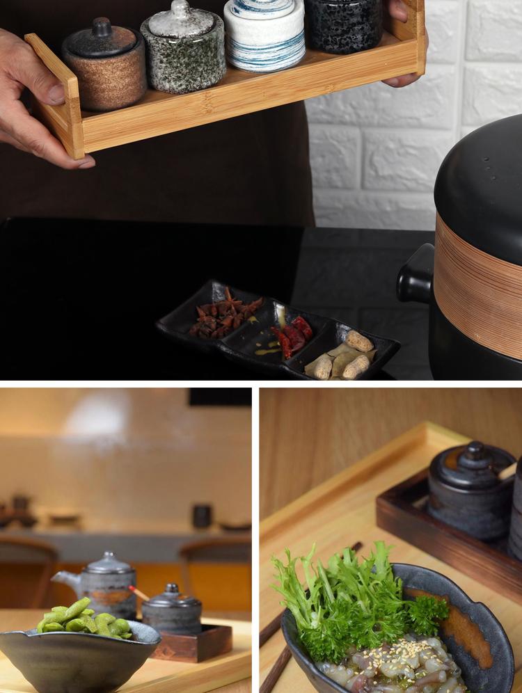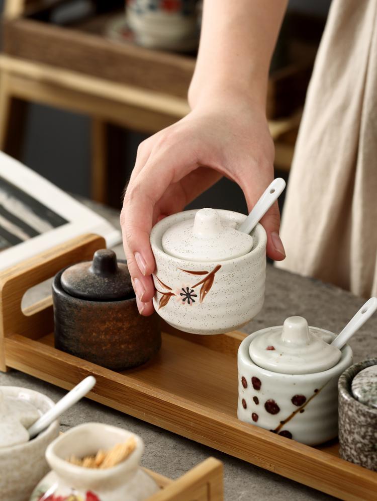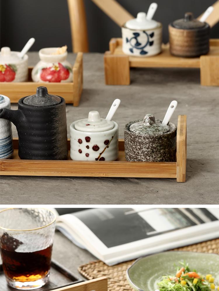 Pote de Tempero Japonês Garrafa de Tempero Conjunto de Caixa de Tempero de Cerâmica Utensílios de Cozinha Criativos Óleo Sal Pote Pequeno Garrafa de Tempero Doméstico