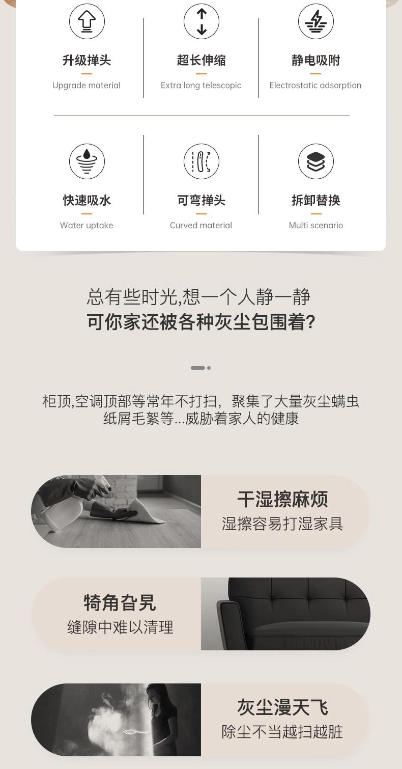 [upgraded aluminum pole combination] gray dust duster + white duster head❤Retractable, removable and thickened...