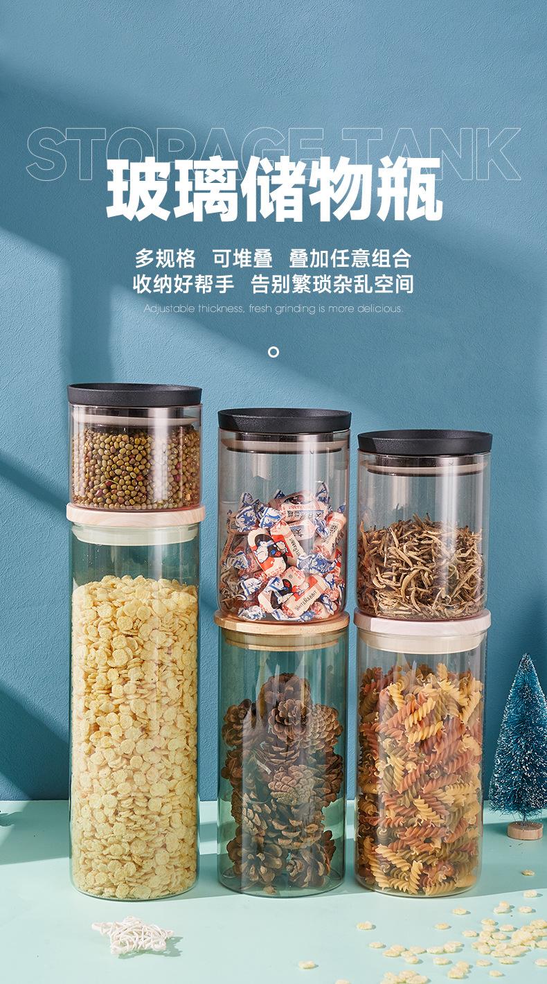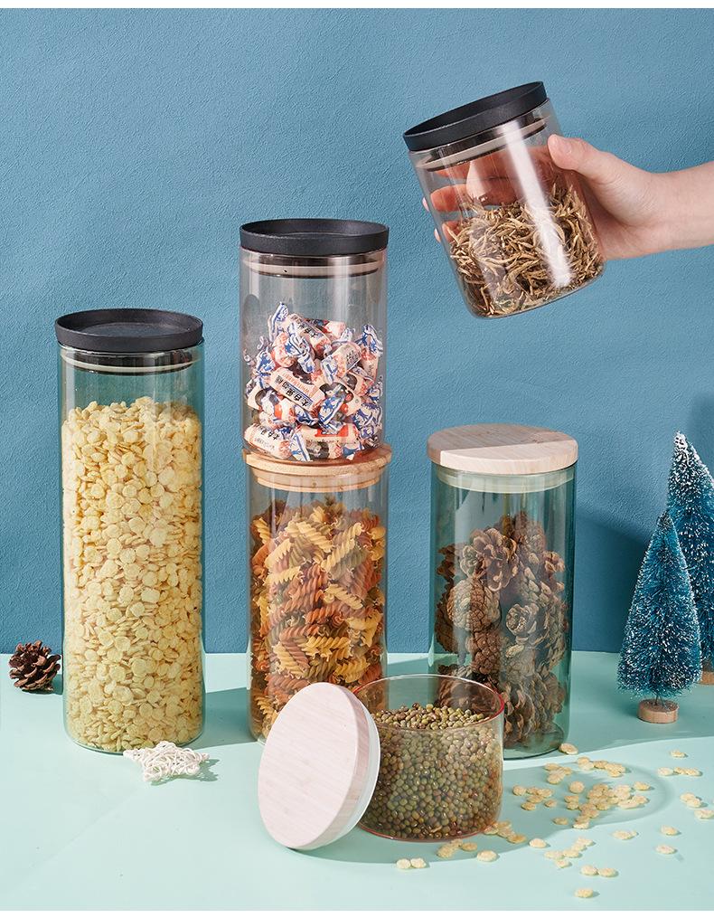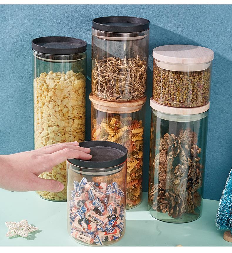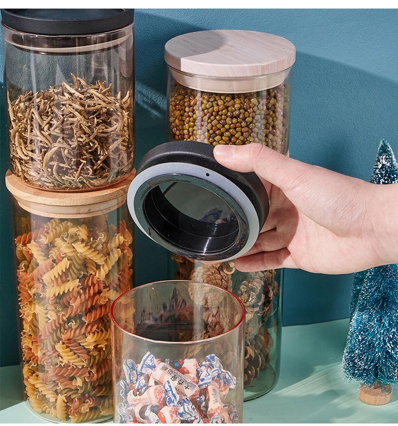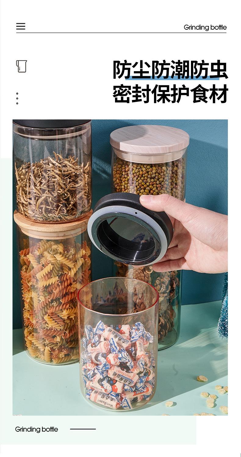 Pote Redondo de Armazenamento com Tampa Vidro Hermético Pote de Armazenamento de Cereal Cozinha Garrafa de Armazenamento de Alimentos Pote de Armazenamento de Alto Borosilicato