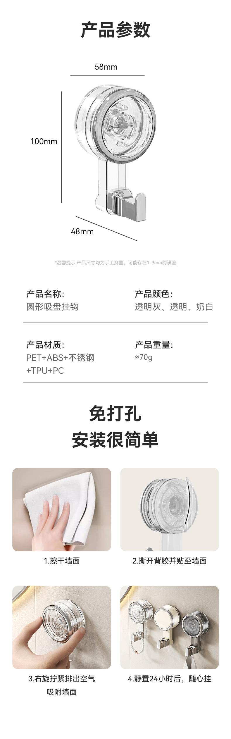 Transparent color [round suction cup hook], Transparent gray [round suction cup hook], Milk white [round suction cup hook]