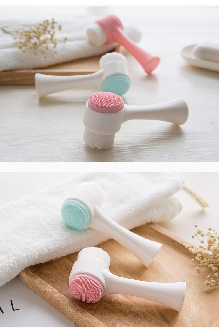 Escova de Limpeza Facial de Cerdas Macias Instrumento de Limpeza Facial Escova de Dupla Face Escova de Limpeza Artefato para Limpeza Profunda dos Poros Faciais Dispositivo para Cravos