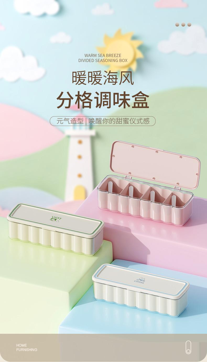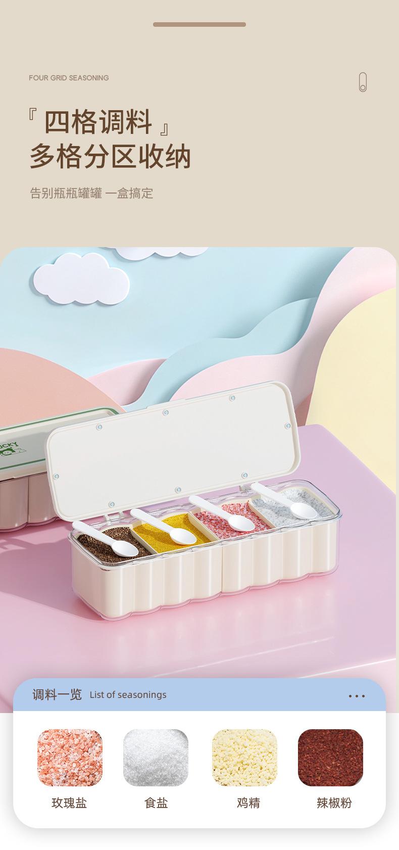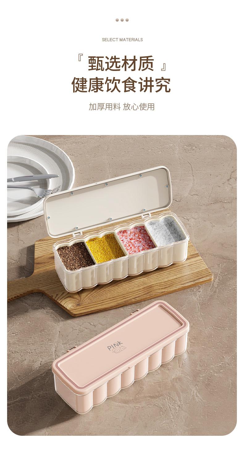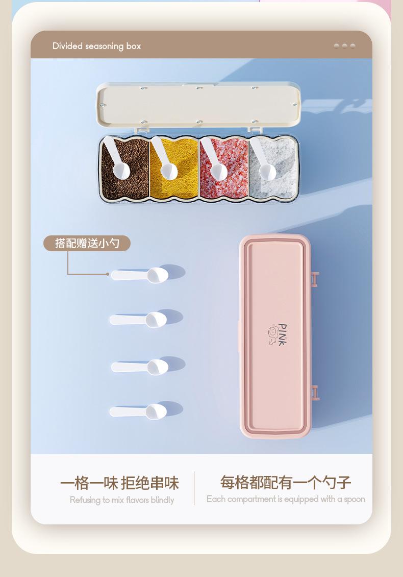Caixa de Condimentos Integrada Multi-Grade Conjunto Combinado Pote de Sal de Cozinha Garrafas e Potes de Tempero Doméstico com Colheres Caixa de Armazenamento de Condimentos com Tampa