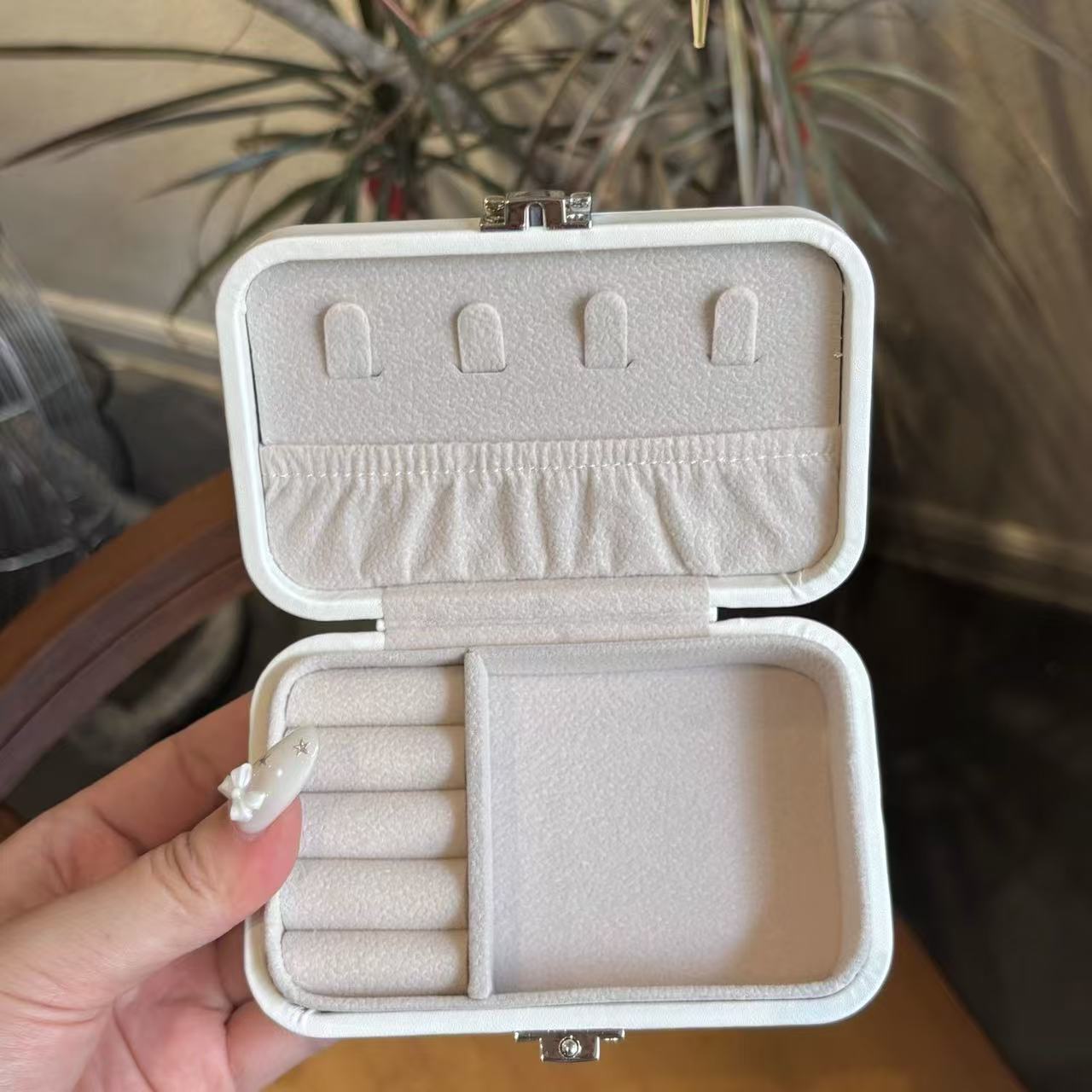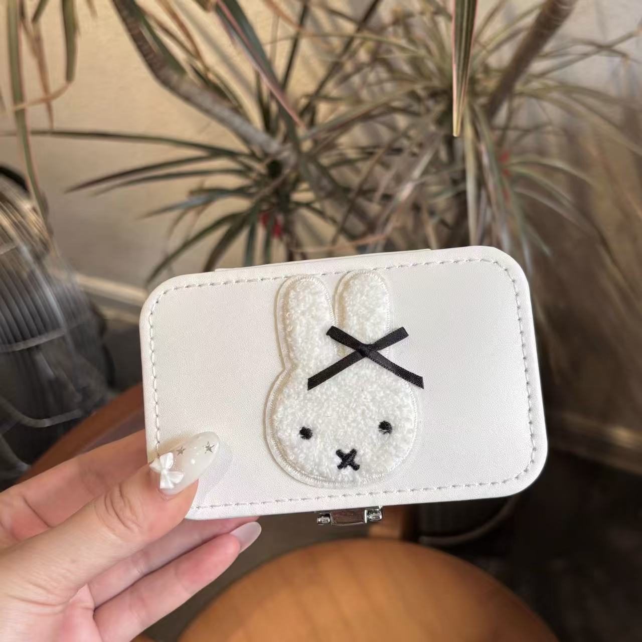 Caixa de armazenamento de joias de coelho simples e fofa, portátil, para brincos, anéis, armazenamento de joias, à prova de quedas, pequena e requintada