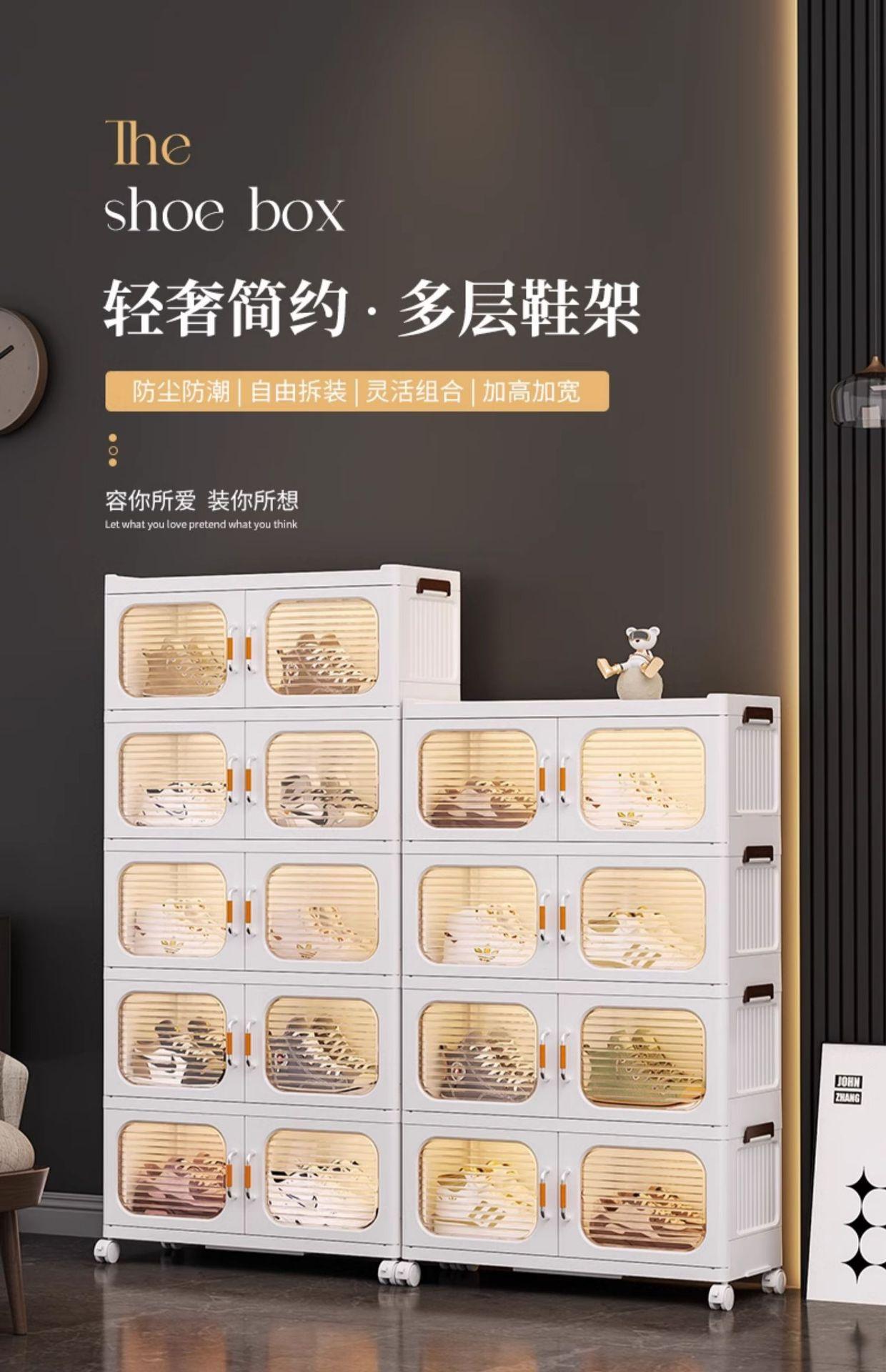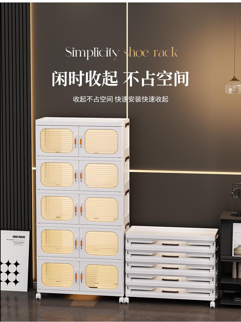 Caixa de Armazenamento de Sapatos Sem Instalação Transparente à Prova de Poeira Armário de Sapatos Porta de Casa Plástico Dobrável Sapateira Dobrável Sapatos