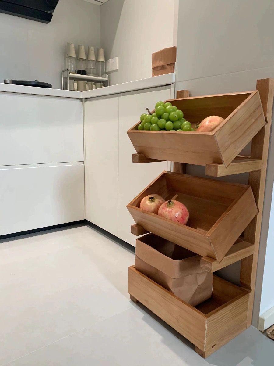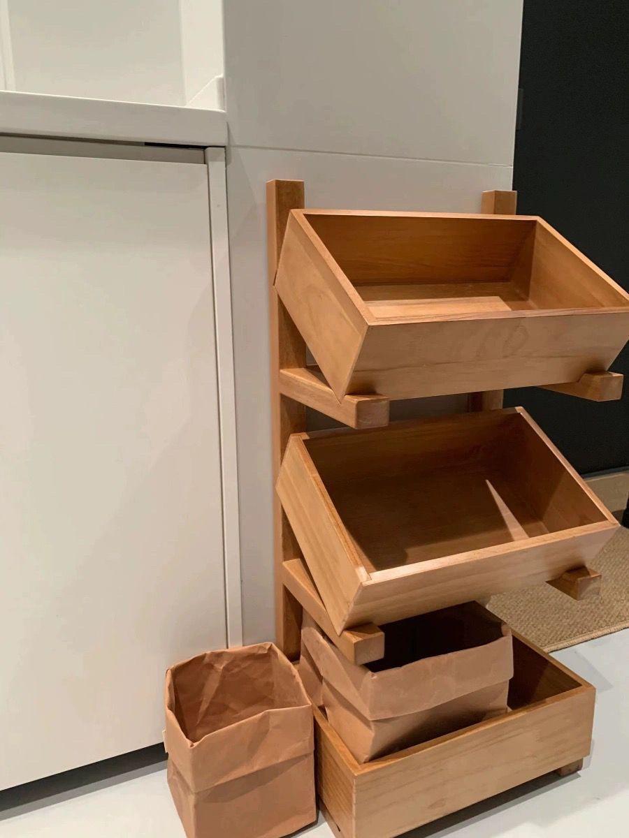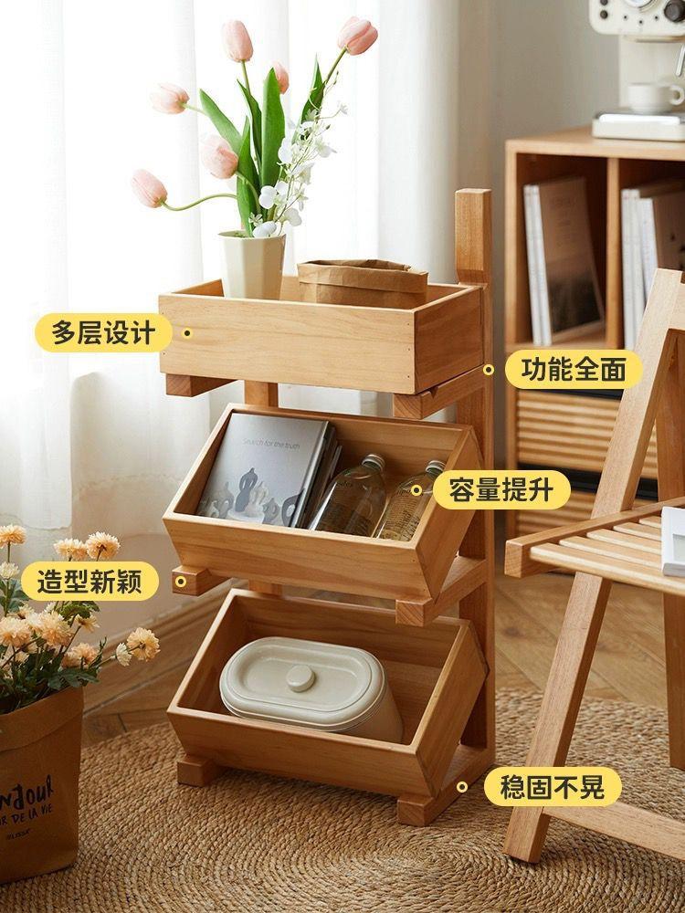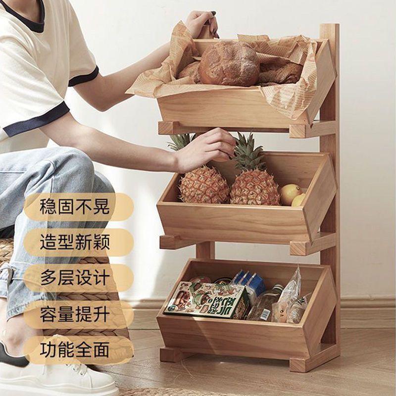 Estante de Armazenamento Multicamadas de Madeira Maciça Estante de Armazenamento para Exibição de Lanches e Legumes para Sala de Estar Doméstica, Cozinha